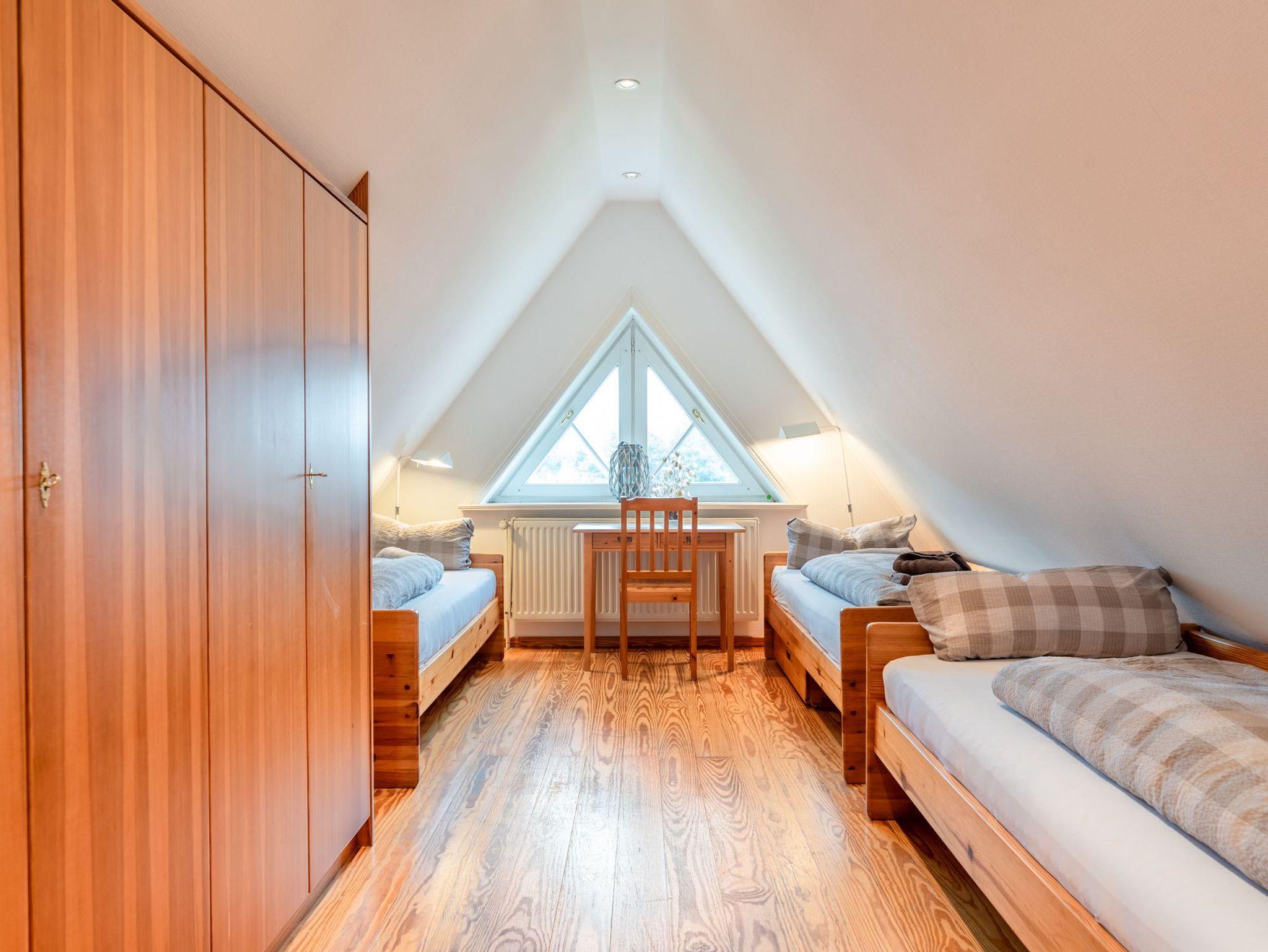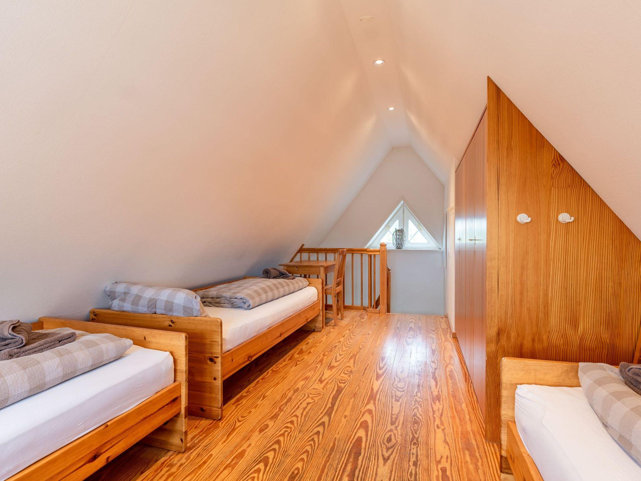 Diese gemütliche 74 m² große Obergeschosswohnung erstreckt sich über 2 Etagen und bietet Platz für bis zu 5 Personen. Die Wohnung erreichen Sie über den linken Hauseingang.