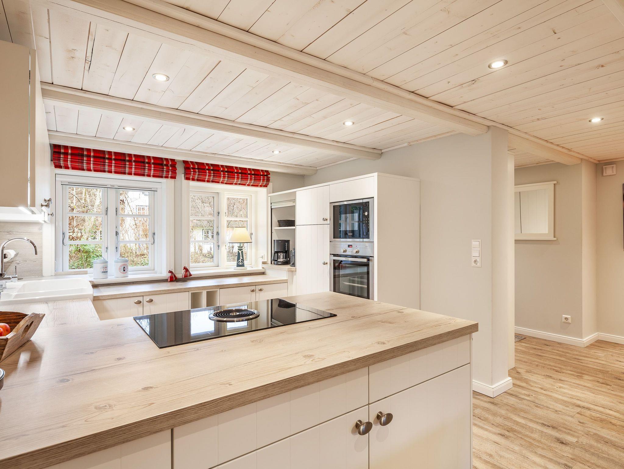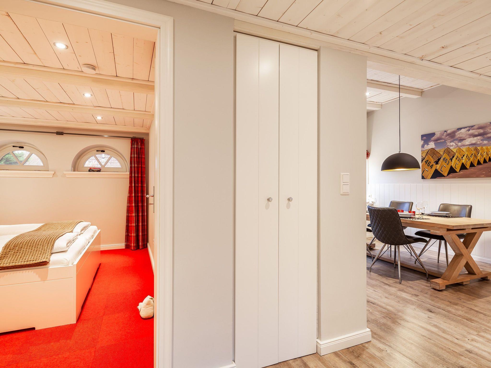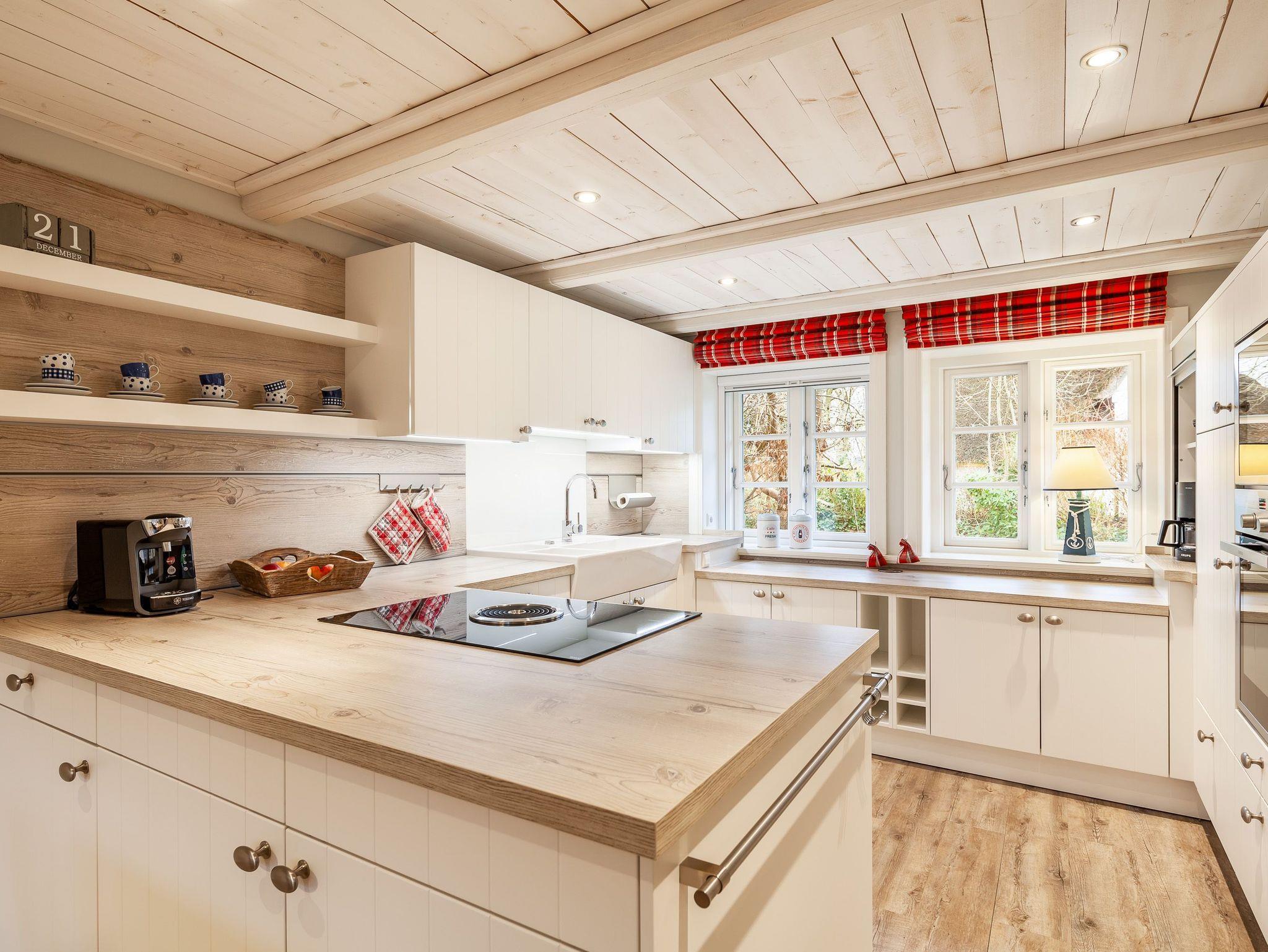 Holzdecken, friesische Holzsprossenfenster und Einbauschränke vom Tischler runden das Bild dieses schicken Hausteils ab.[nbsp]