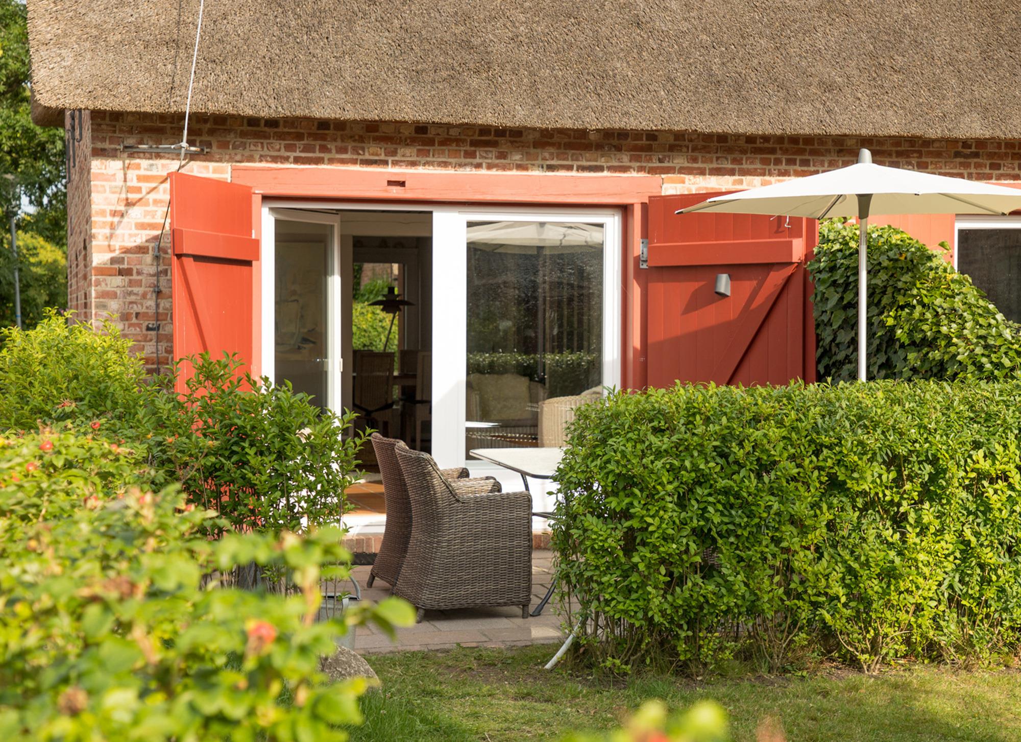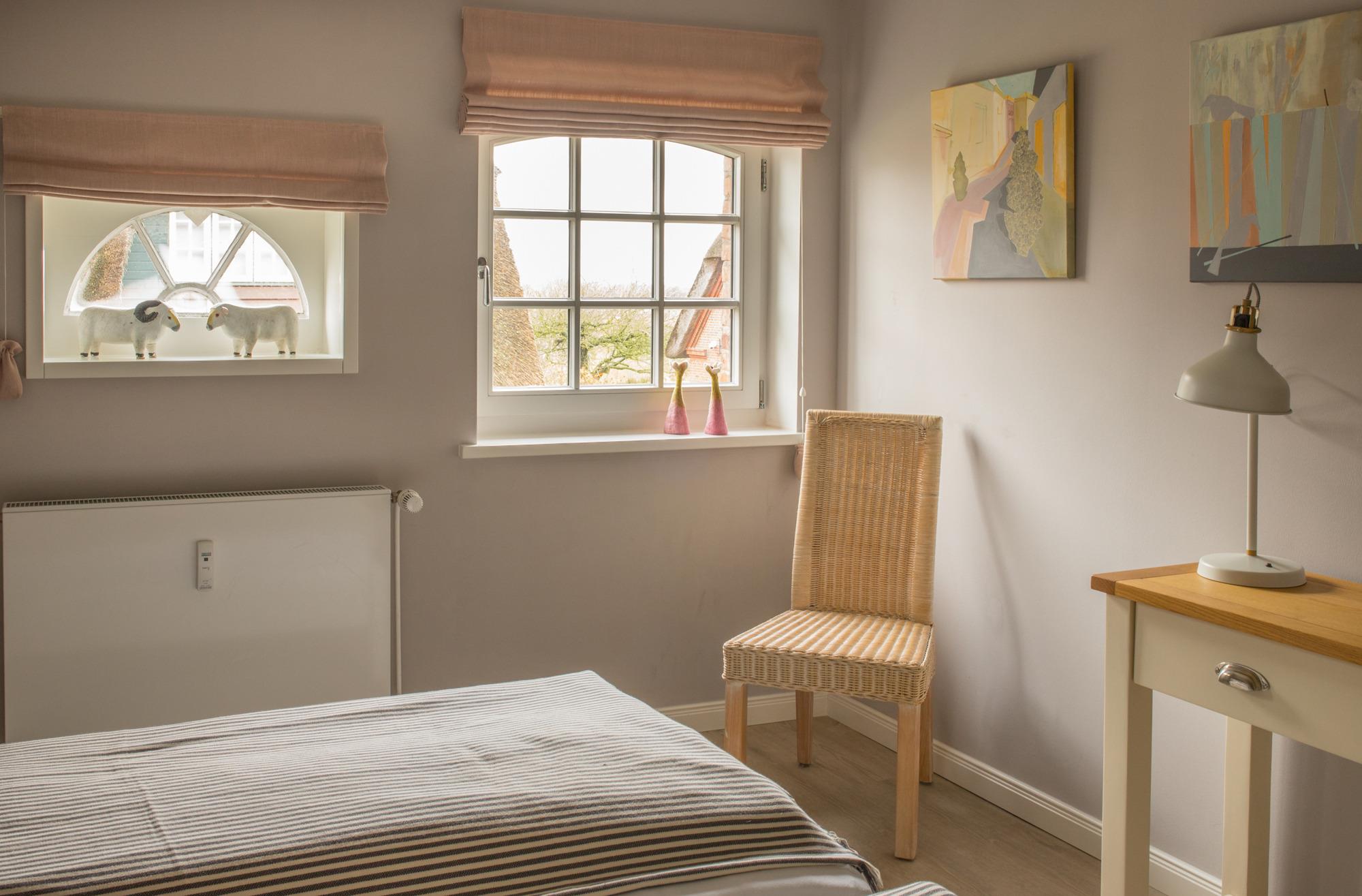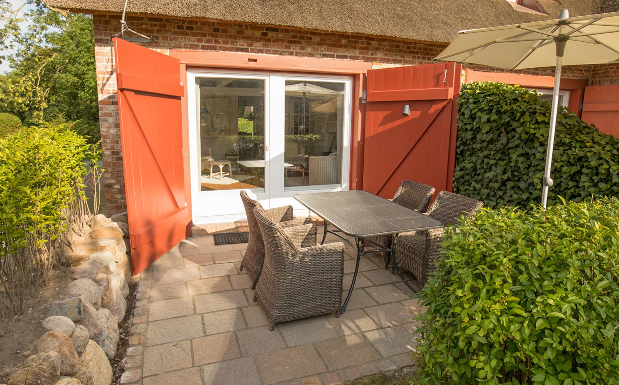 Willkommen im gepflegten Endhausteil "Foftein" in Borgsum auf Föhr. Im Nordwestgiebel des reetgedeckten Hauses mit mehreren Hausteilen erwartet Sie eine großzügige Unterkunft über zwei Etagen mit separatem Eingang und eigenem PKW-Stellplatz.