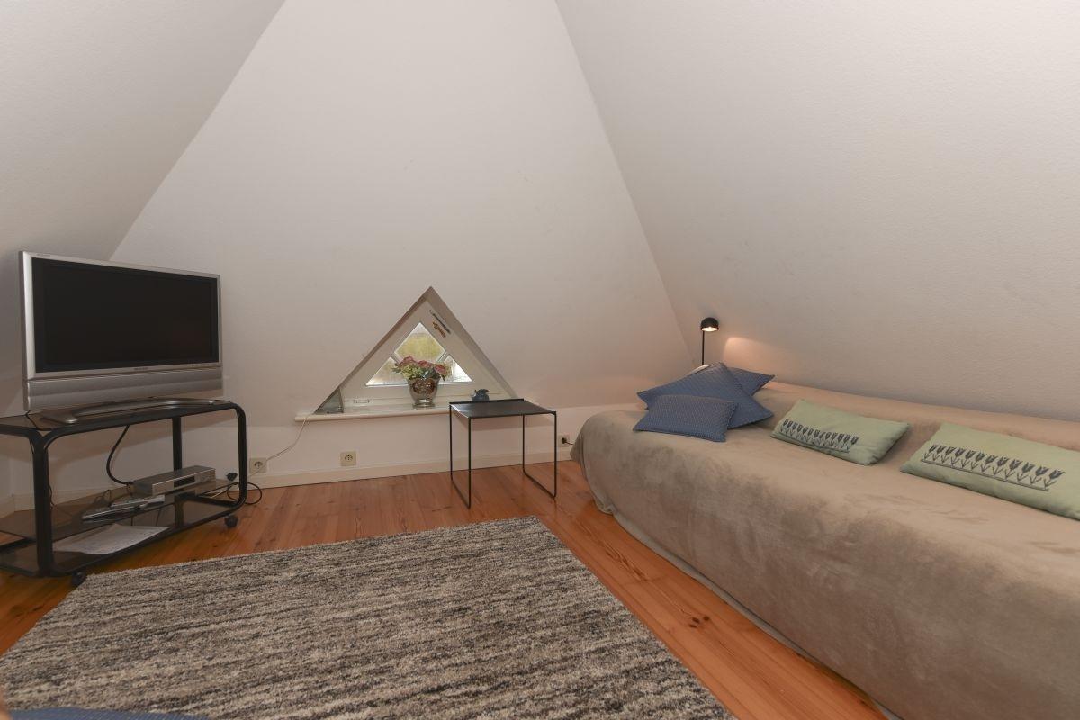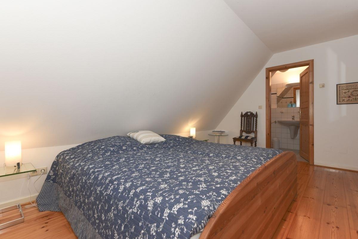 Im Obergeschoss erwarten Sie drei geräumige Schlafzimmer – ideal für Familien oder Freunde. Das Elternschlafzimmer mit Doppelbett und eigenem Duschbad sorgt für Ruhe und Komfort, während das zweite Schlafzimmer mit Doppelbett und Kleiderschrank sowie das gemütliche Kinderzimmer mit Etagenbett und Stauraum für erholsame Nächte sorgen. Ein weiteres Badezimmer im Obergeschoss rundet das Angebot ab.