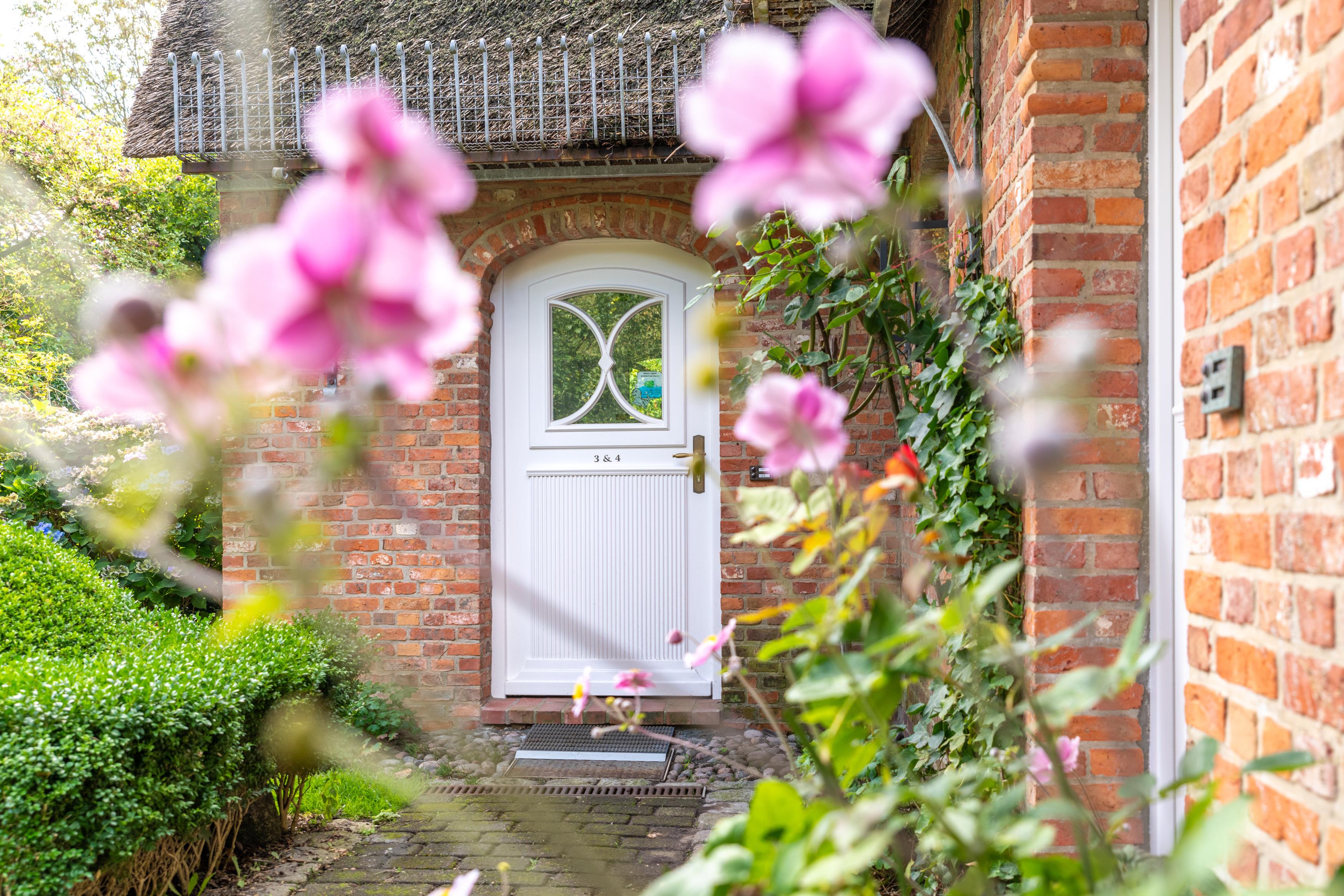 Gemütliche Ferienwohnung mit Terrasse und Garten in ruhigem Reetdachhaus in Borgsum, nahe Strand und Dorfzentrum.