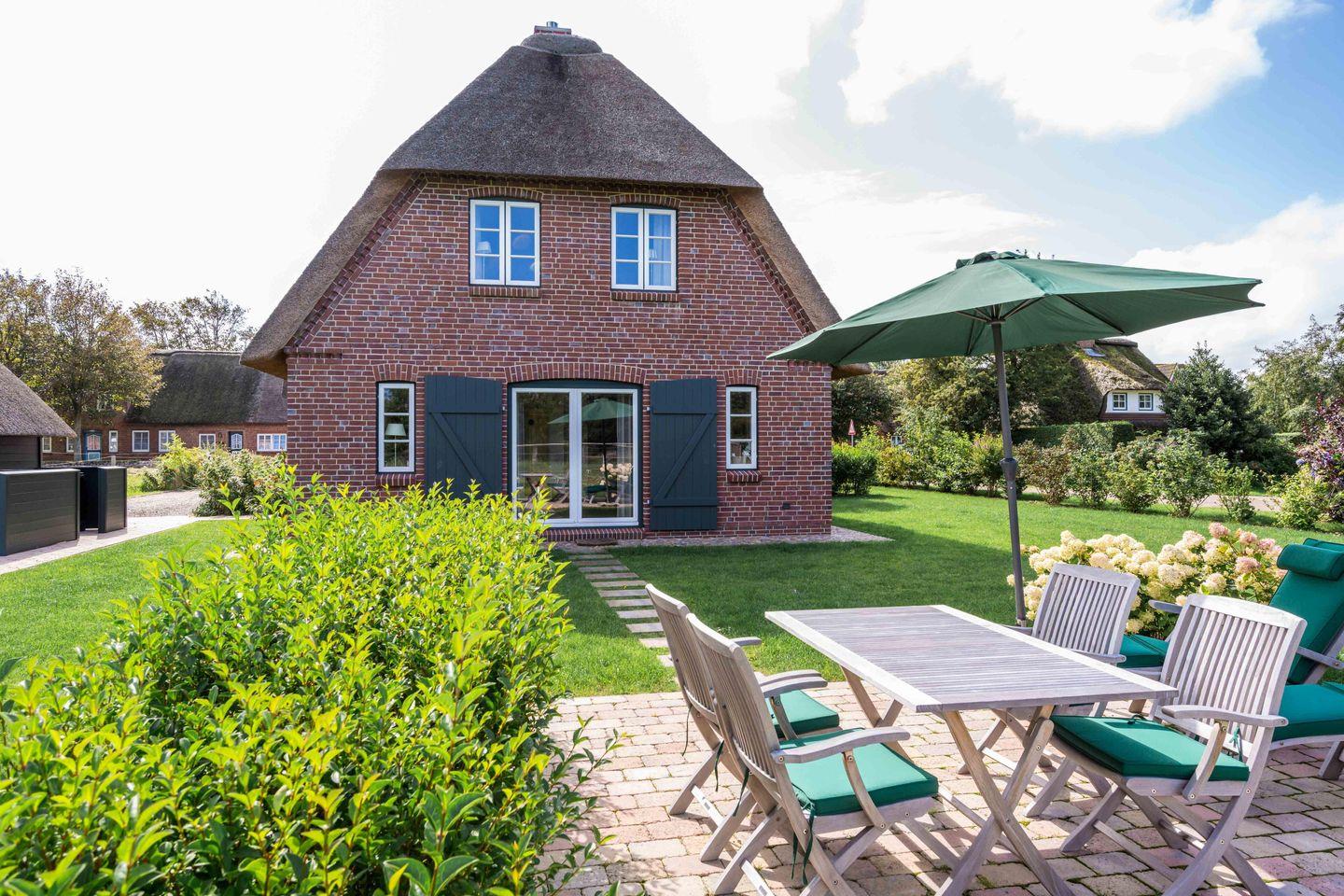 Luxuriöse Doppelhaushälfte in Borgsum mit Sauna, Kachelofen und großem Garten für erholsame Tage auf Föhr.