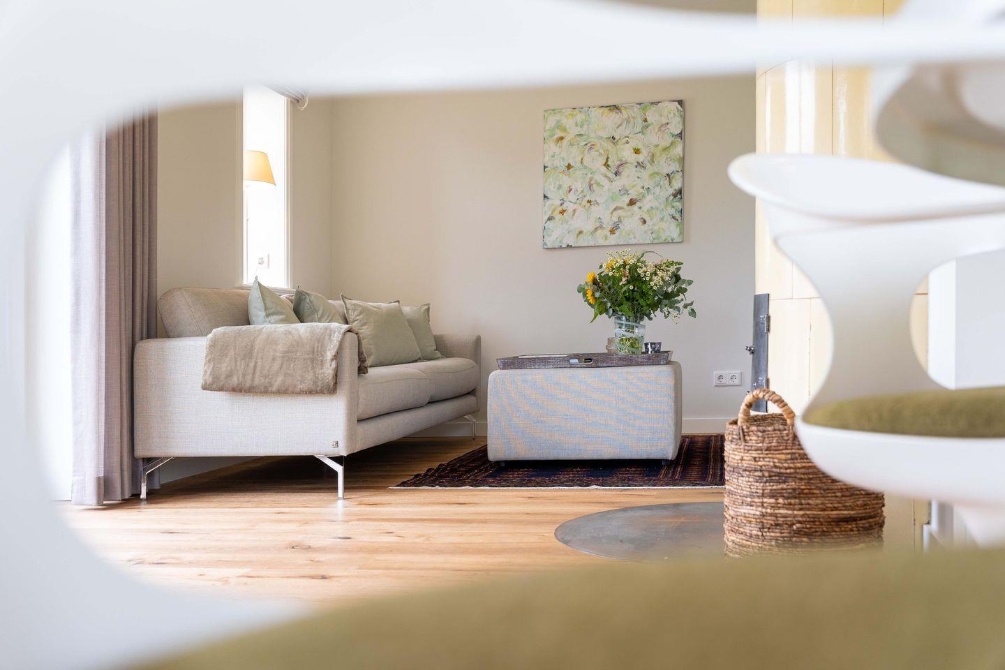 Der hintere Hausteil "Haus an der Koppel" erwartet Sie als Ort der Entschleunigung. Die Atmosphäre eines großzügigen Hauses mit viel Kunst, individuellen Wohnelementen und neuester Technik bezaubert. Es wurde mit nachhaltigen Materialien gearbeitet. Geheizt wird mit einer Luftwärmepumpe. Umgeben von einem ansprechend gestalteten Garten auf großem Grundstück mit inseltypischem Friesenwall, bietet das Haus an der Koppel beste Voraussetzungen für Entspannung, Freude und Erholung. Mit etwas Glück kommen die Ziegen und Pferde der benachbarten Koppel bis fast an den, in den Garten verlagerten, Terrassenbereich und lassen sich von hier aus beobachten.