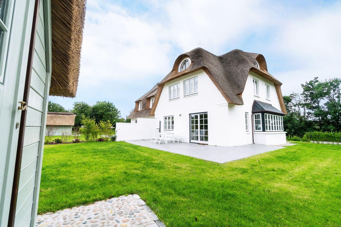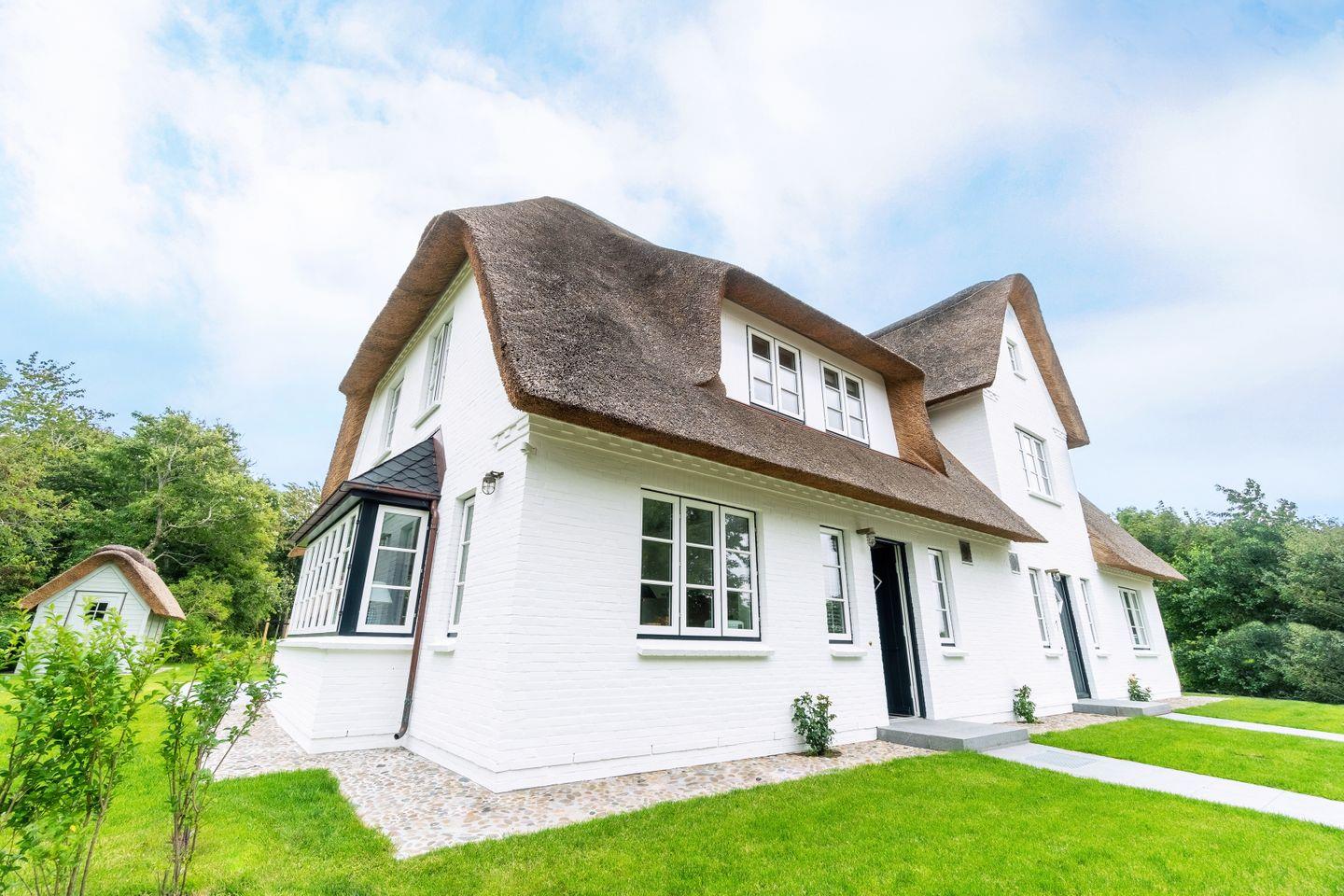 Luxuriöse Doppelhaushälfte unter Reet mit Sauna, Kamin und großem Garten an der Nordsee.