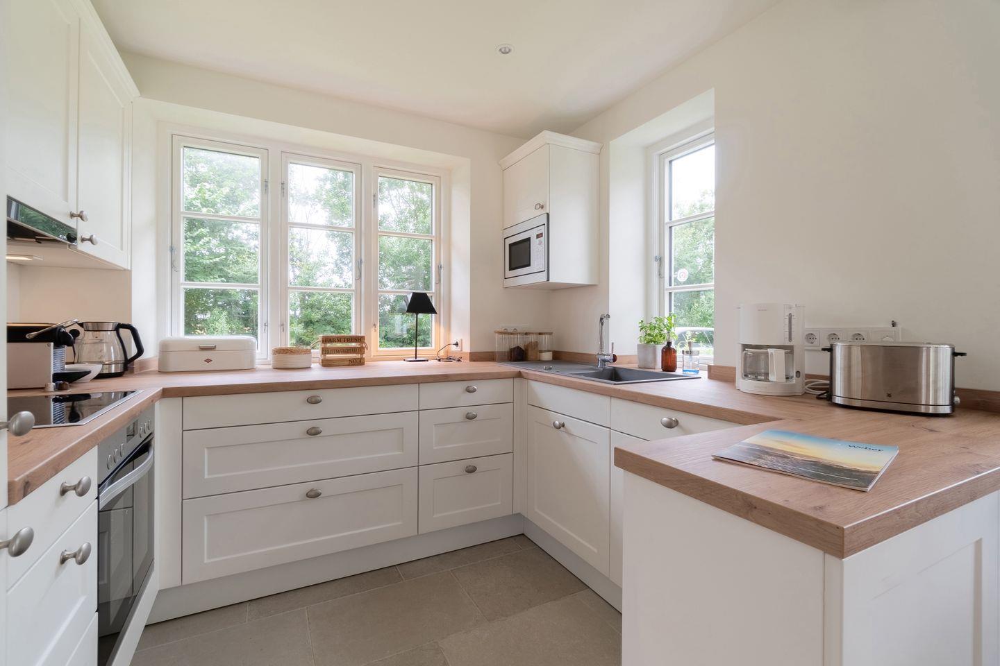 Moderne, hochwertig eingerichtete Doppelhaushälfte unter Reet mit großem Garten, Sauna und Kamin.