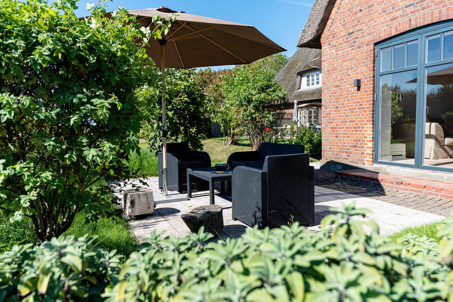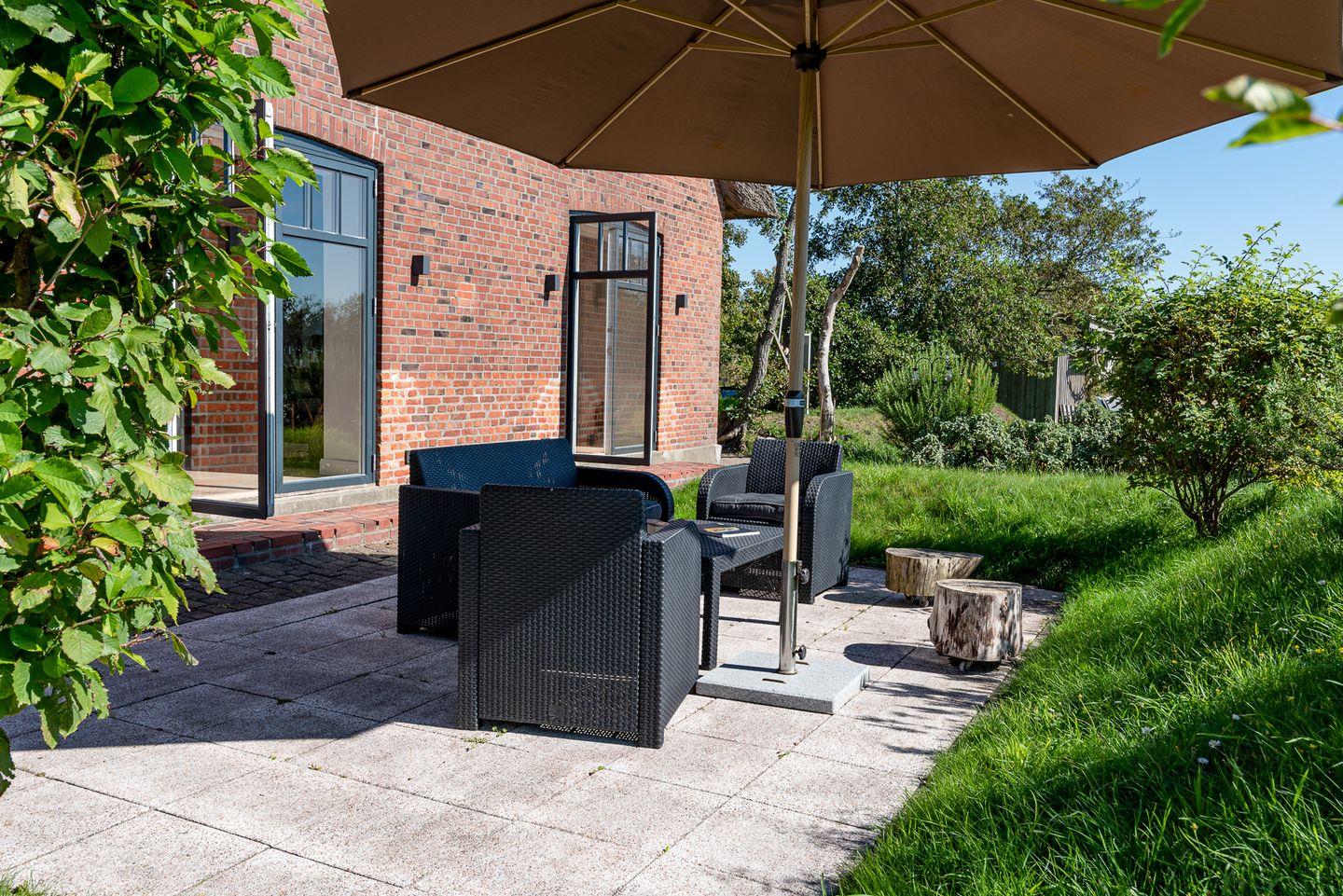 Erleben Sie Erholung pur im reetgedeckten Haus Seeadler mit Sauna, Kamin und zwei Terrassen in Borgsum.