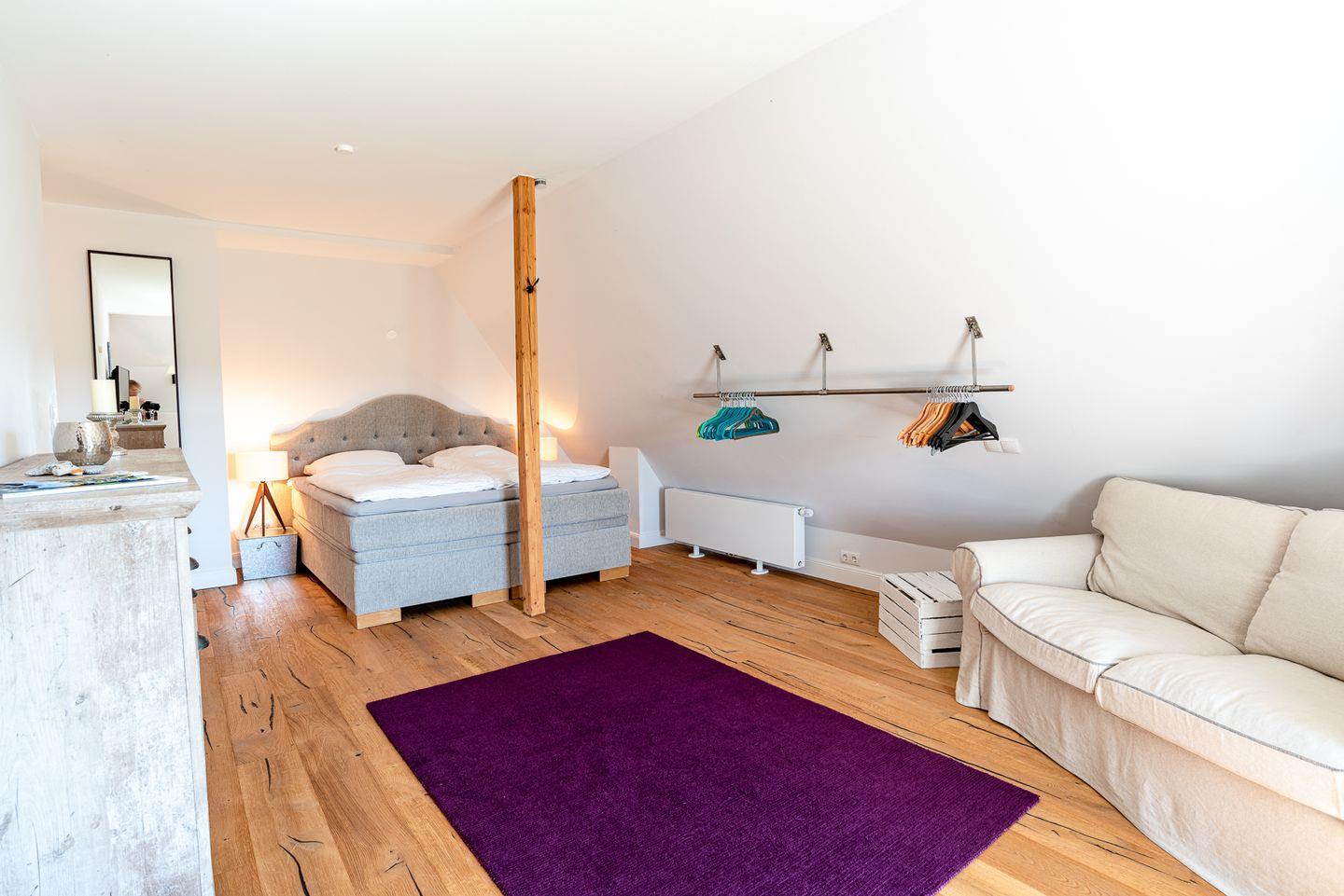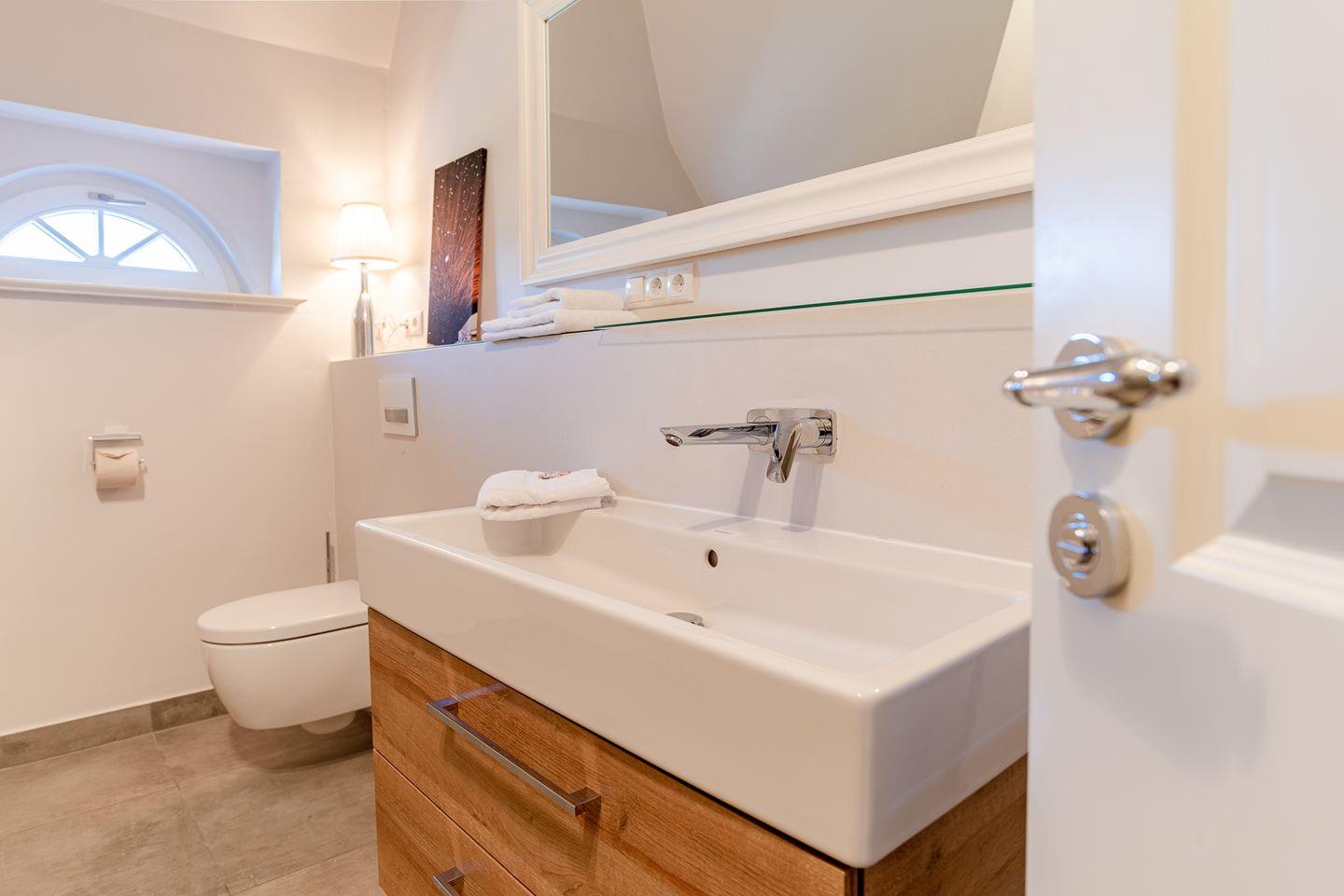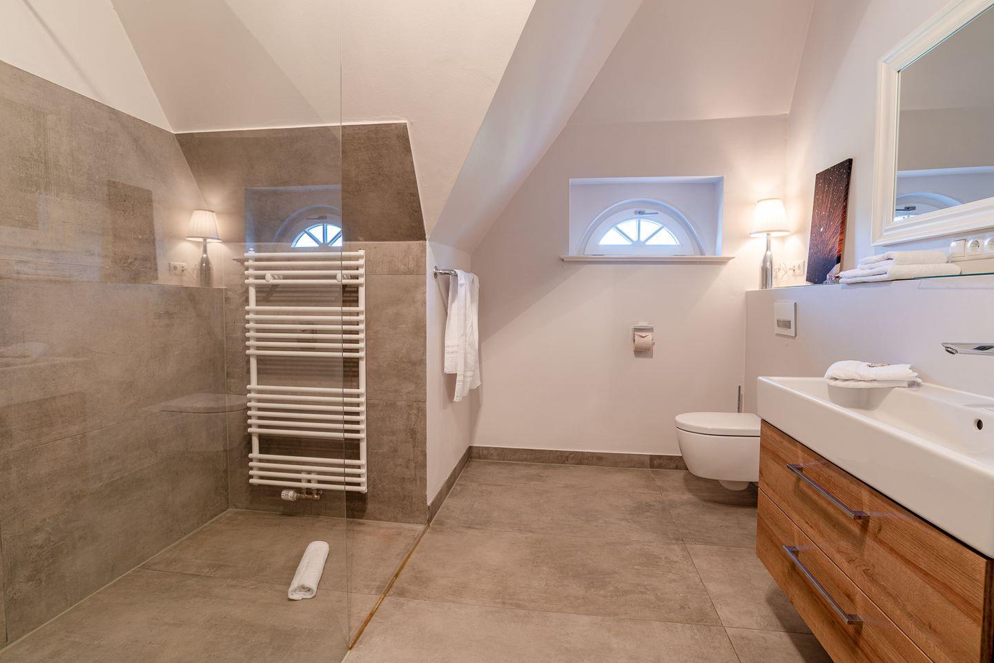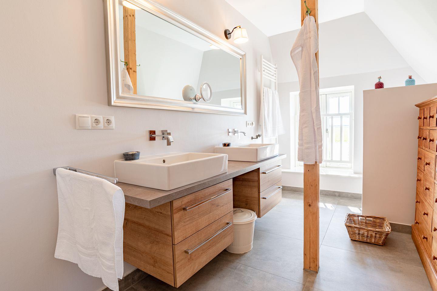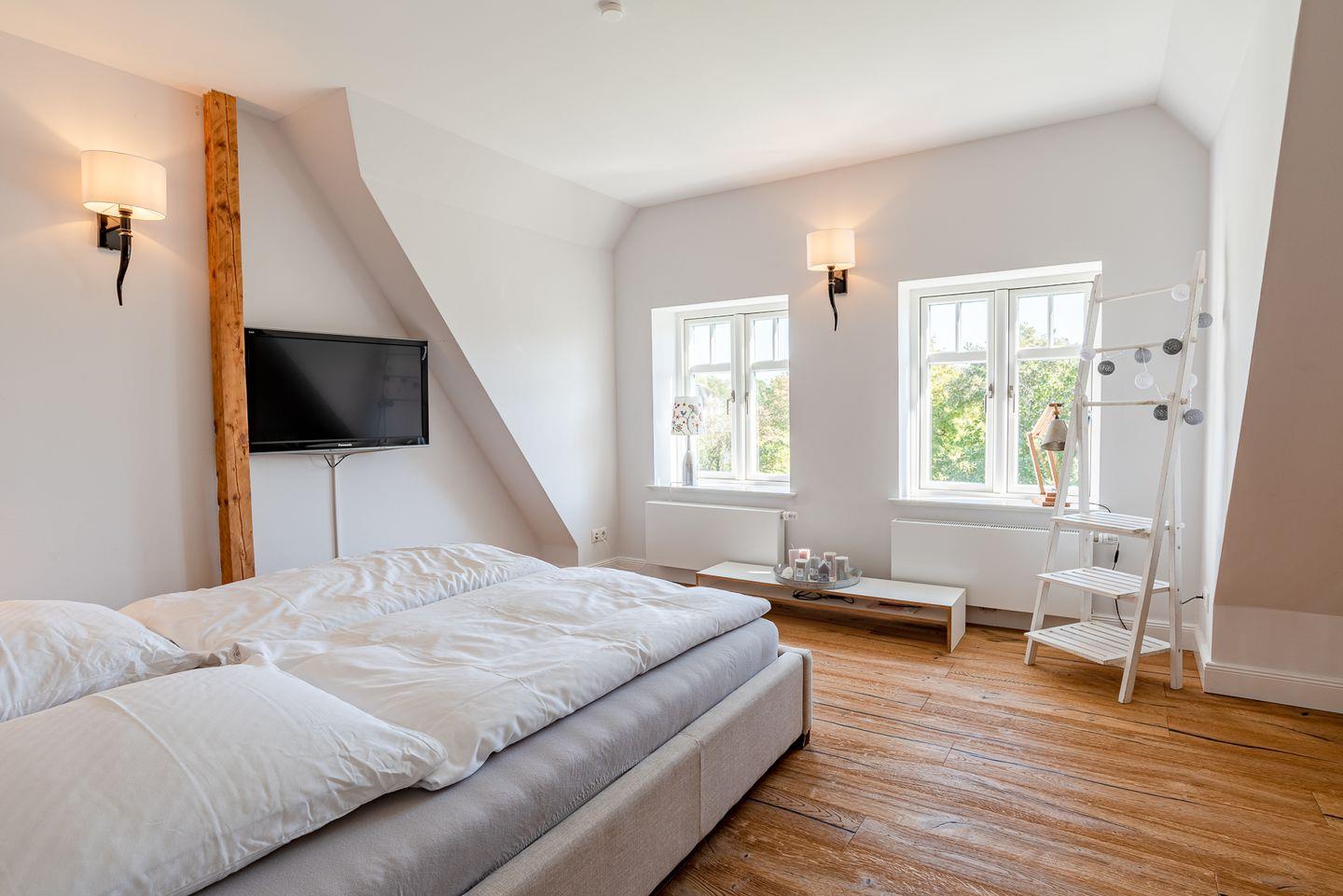 Der reetgedeckte Ferienhausteil Seeadler verfügt über 4 Schlafzimmer, 4 Bäder und 1 Gäste-WC und bietet somit komfortabel Platz für bis zu 8 Personen zuzüglich einer Kleinkinderaufbettung. Auch ein Hund ist hier herzlich willkommen.