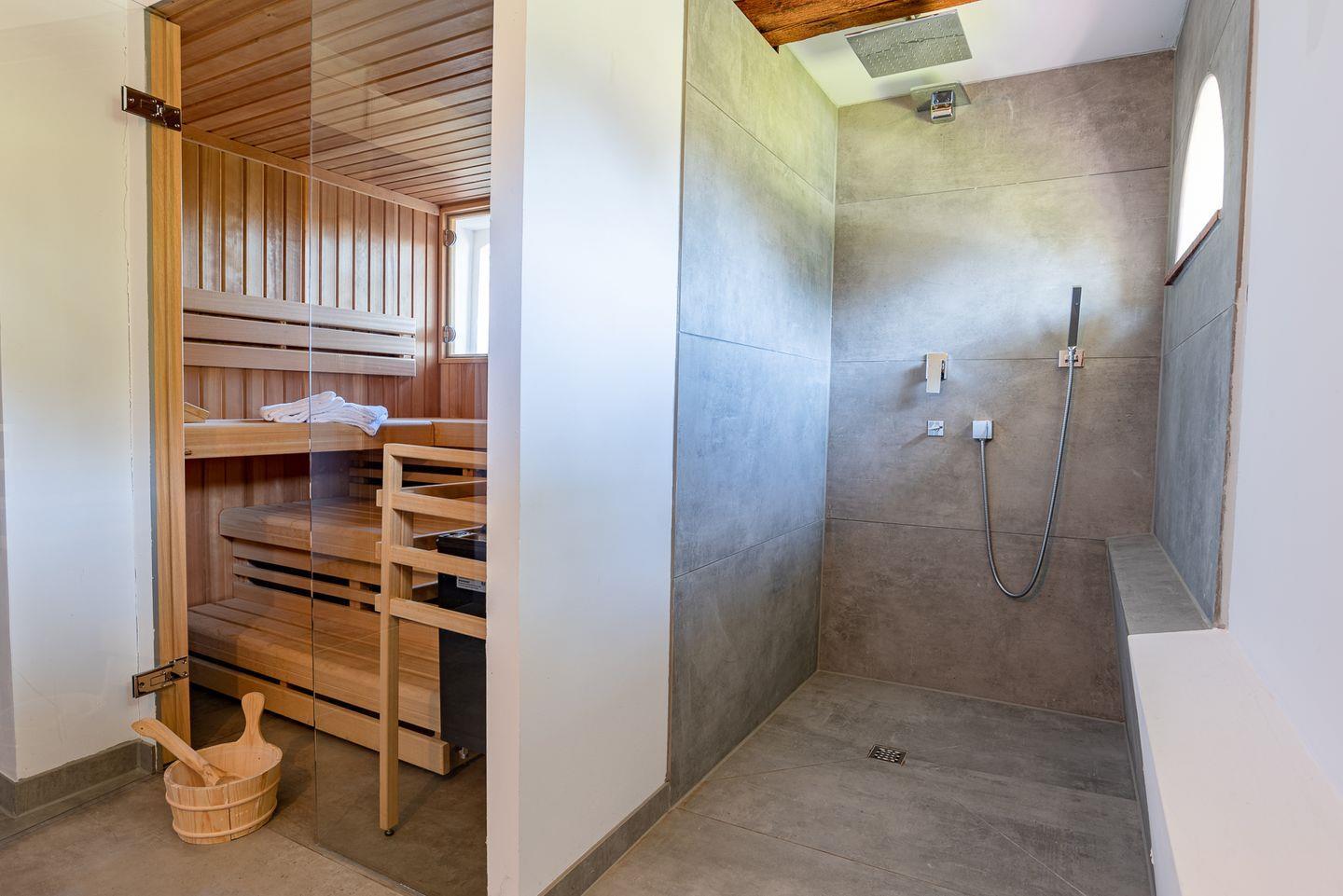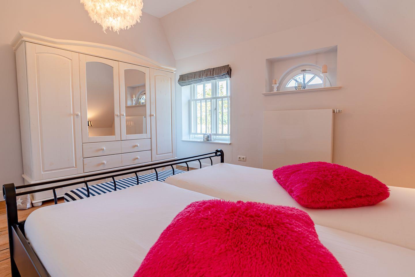 Im Obergeschoss sind die vier Schlafzimmer und die vier Duschbäder gelegen. Alle Schlafzimmer sind mit jeweils einem Doppelbett ausgestattet. Zwei der Bäder liegen en Suite.