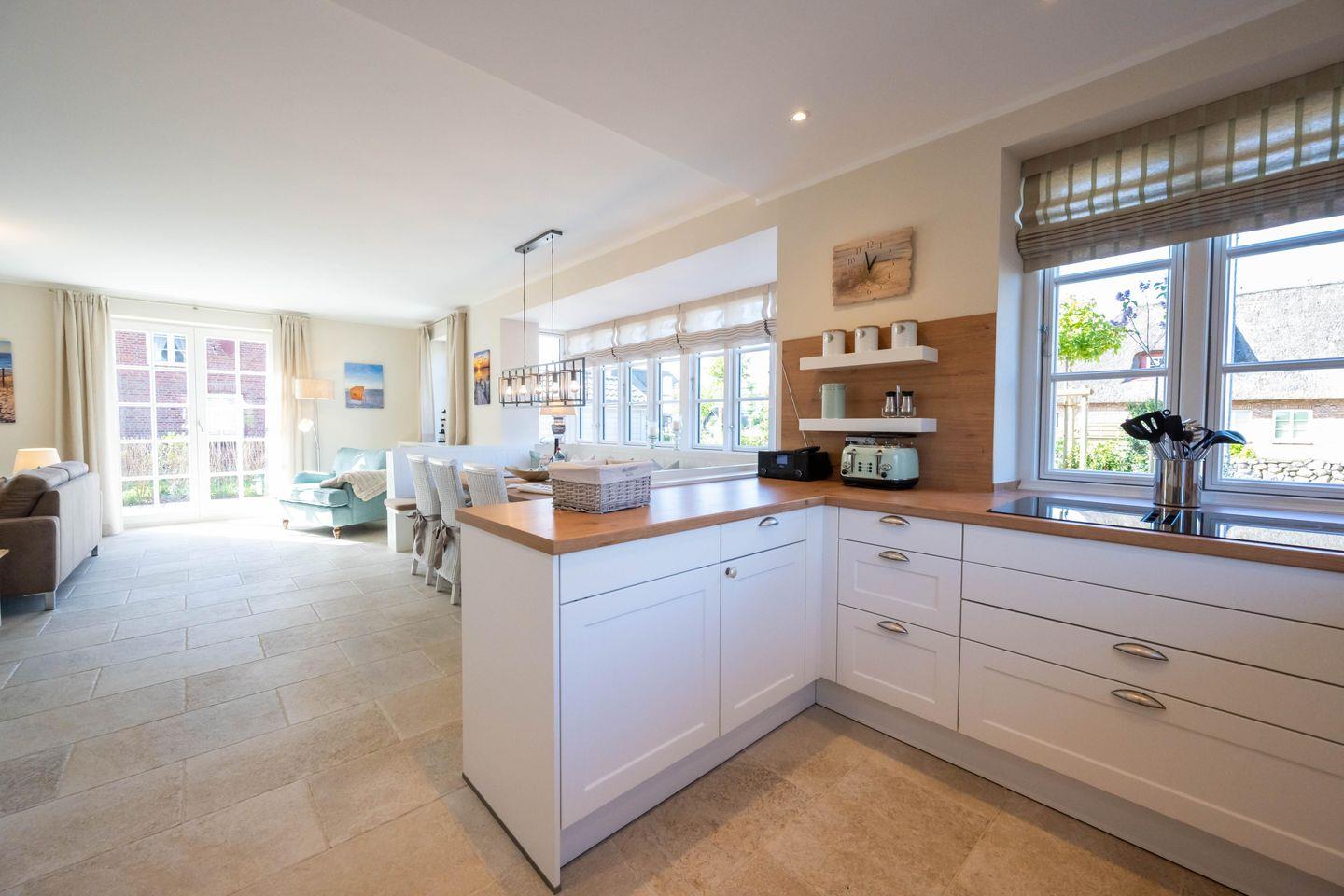 Das Nordseehaus Föhr liegt unweit der Borgsumer Mühle; Bäcker, Restaurant und Café sind fußläufig erreichbar.
