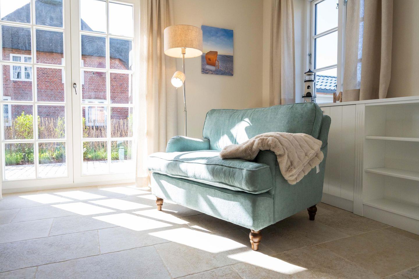 Genießen Sie exklusiven Komfort mit Sauna und Kamin im Nordseehaus Föhr, nur 1000 m vom Strand entfernt.