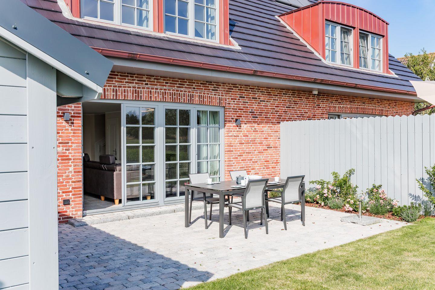Exklusive Doppelhaushälfte in Borgsum mit Kamin, Terrasse und herrlichem Meerblick für entspannte Ferien.