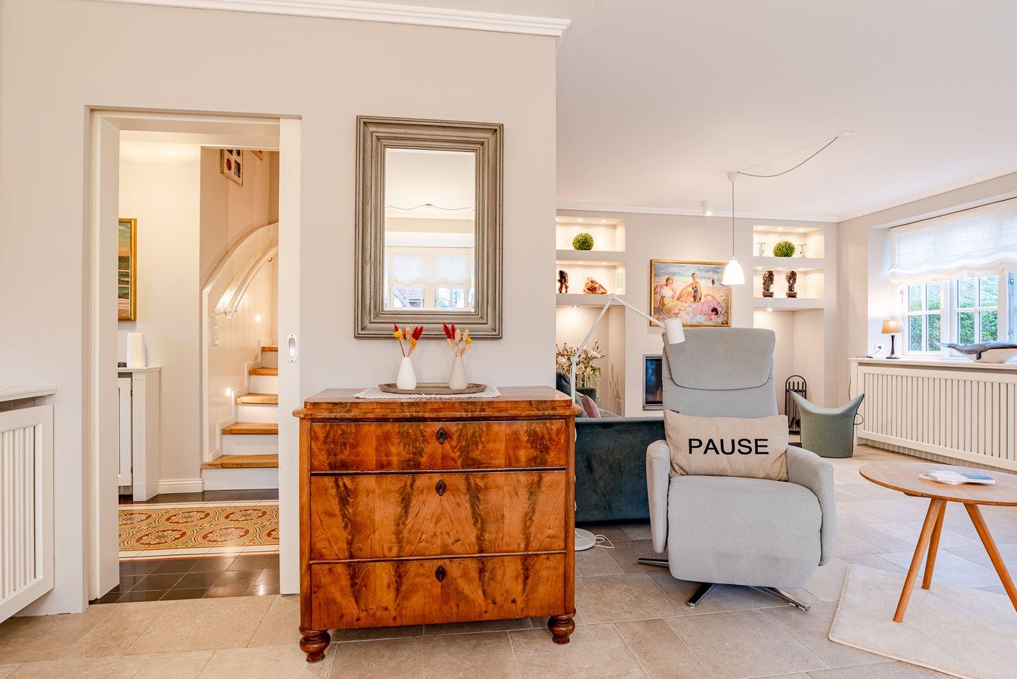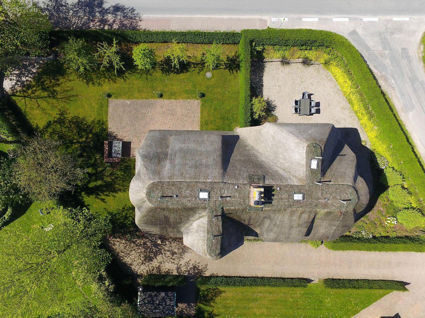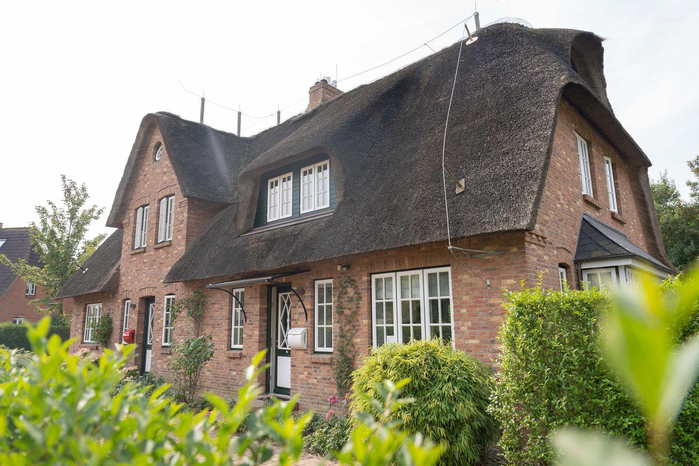 Moderne Doppelhaushälfte unter Reet mit Garten und Terrasse.