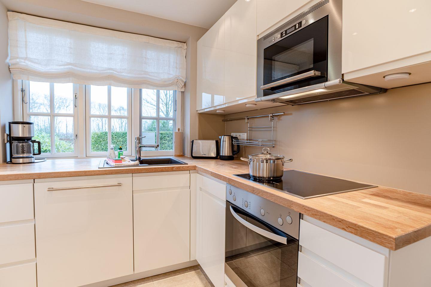 Moderne Doppelhaushälfte unter Reet mit Sauna, Kamin und eingezäuntem Garten in Borgsum.