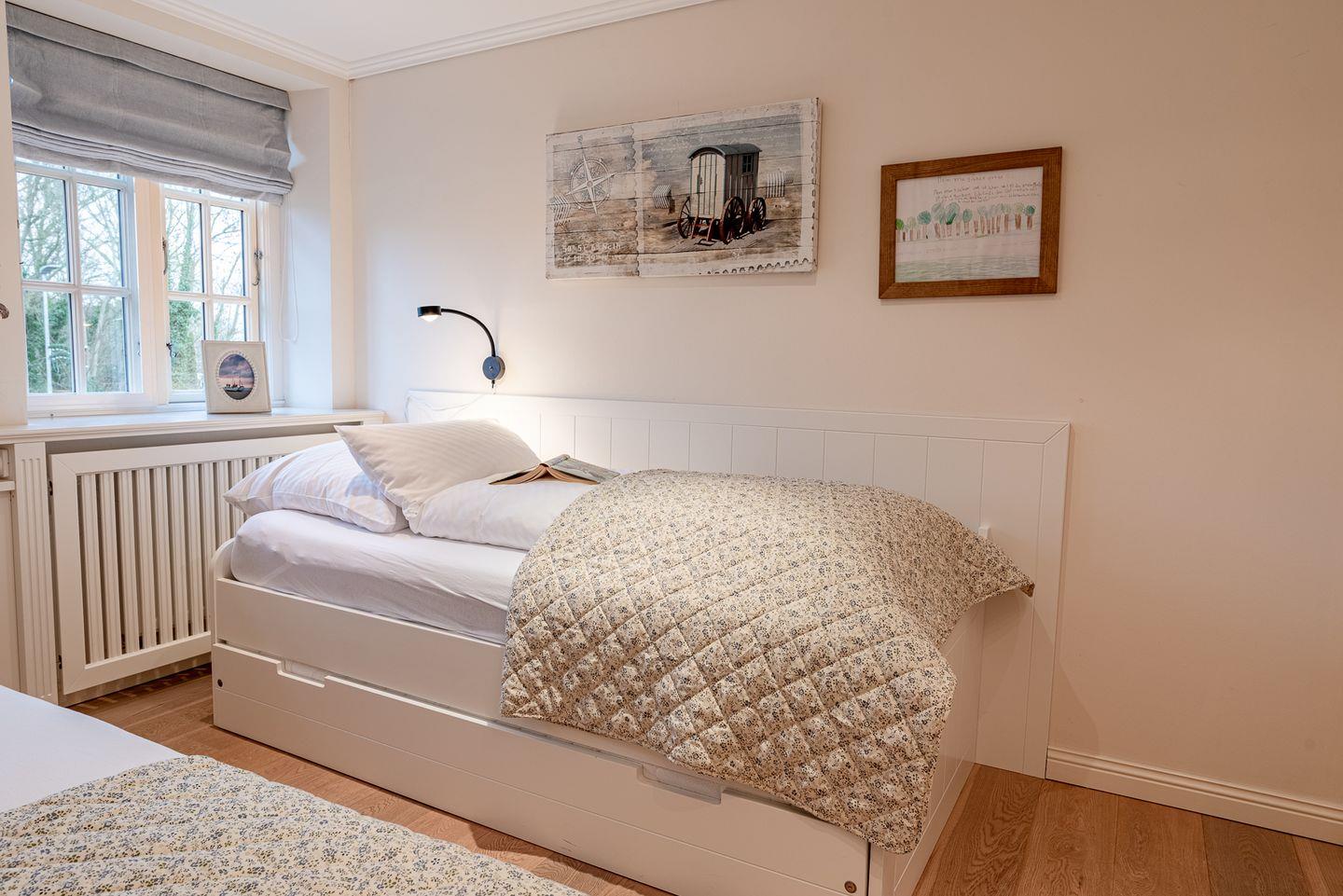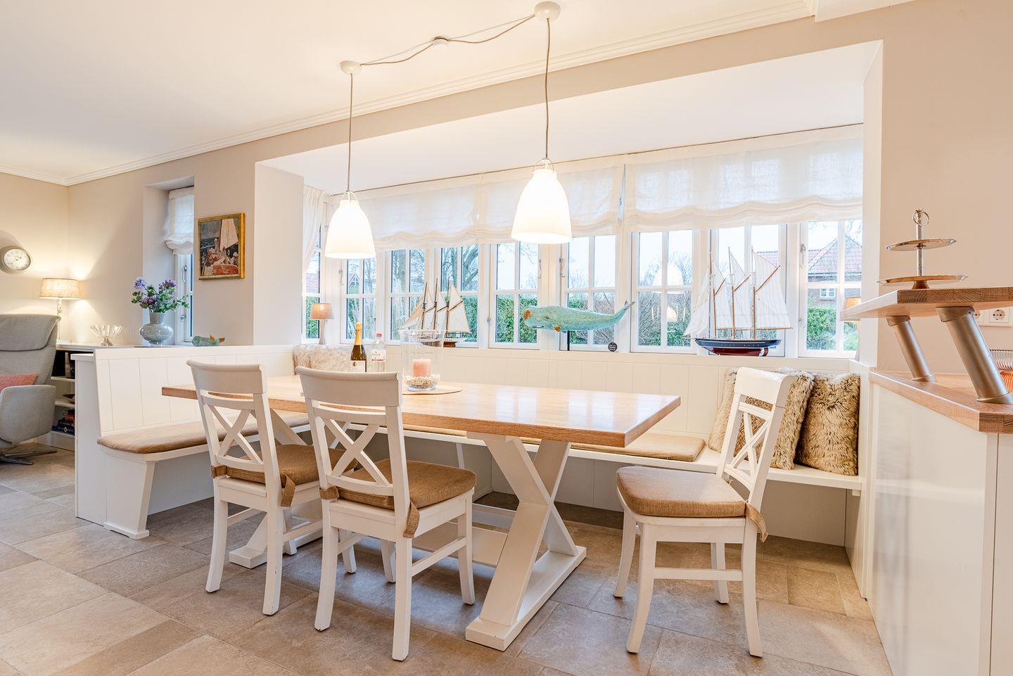Die Ferienwohnung Friesenliebe erstreckt sich in der reetgedeckten Doppelhaushälfte über drei Etagen - EG, OG und DG.