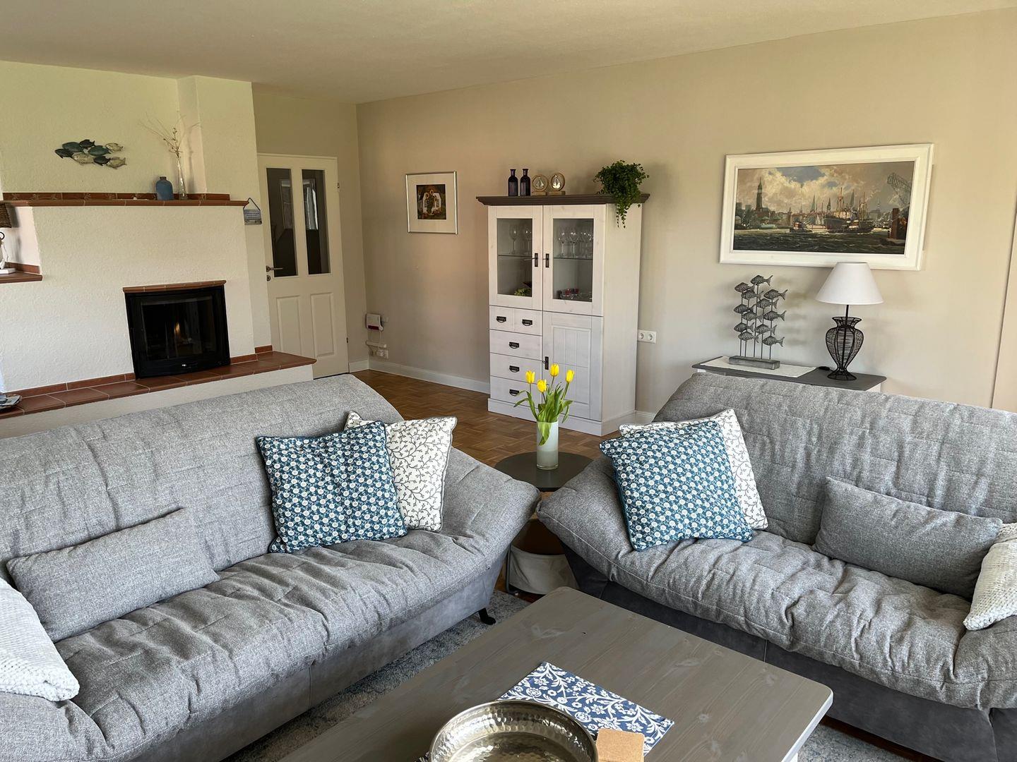 Großzügige, komfortable Ferienwohnung in ruhiger Lage, mit Kamin, großem Garten mit Spielwiese, geschützter großer Terrasse, Strandkorb und sicherem PKW-Stellplatz!