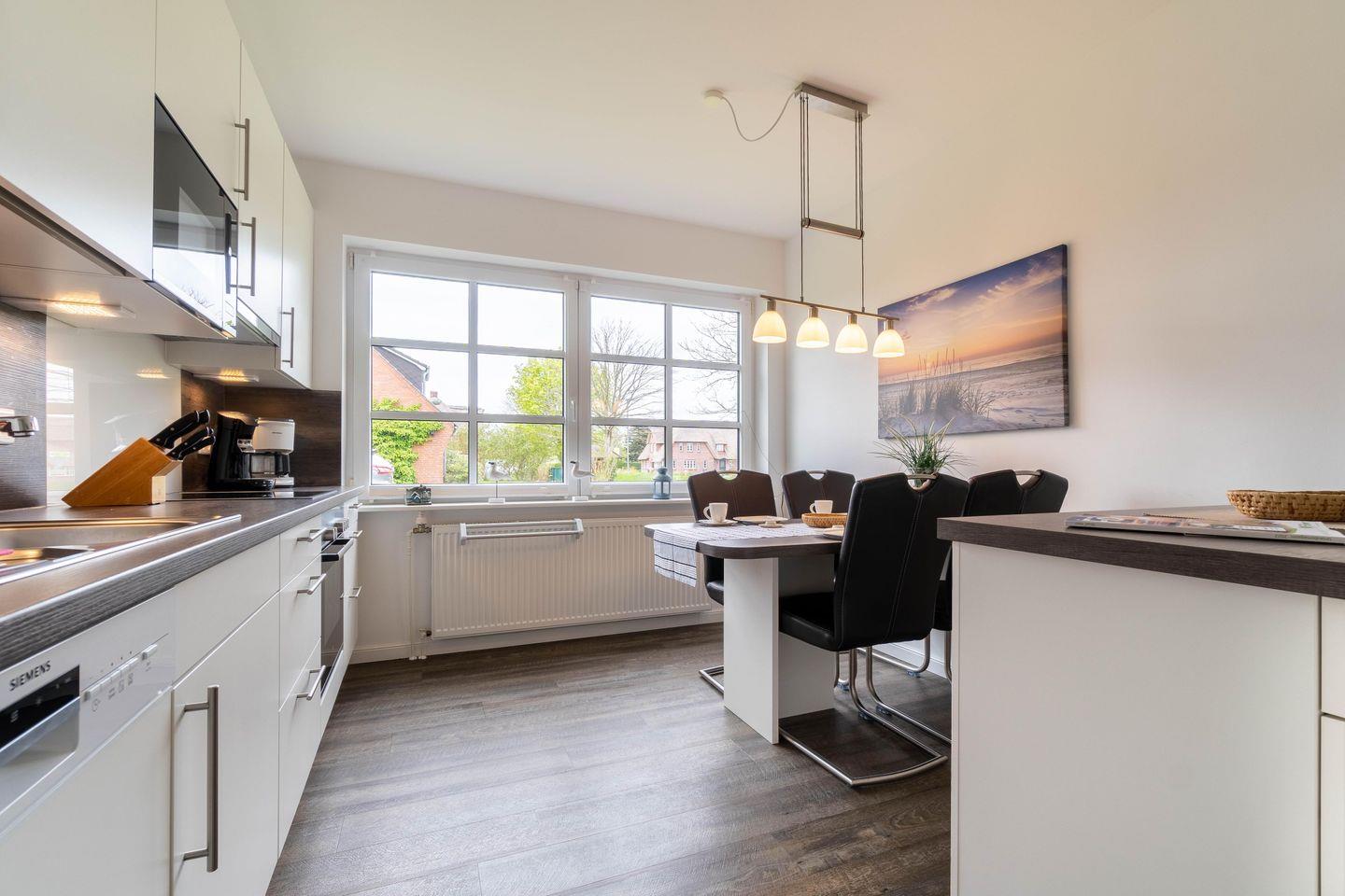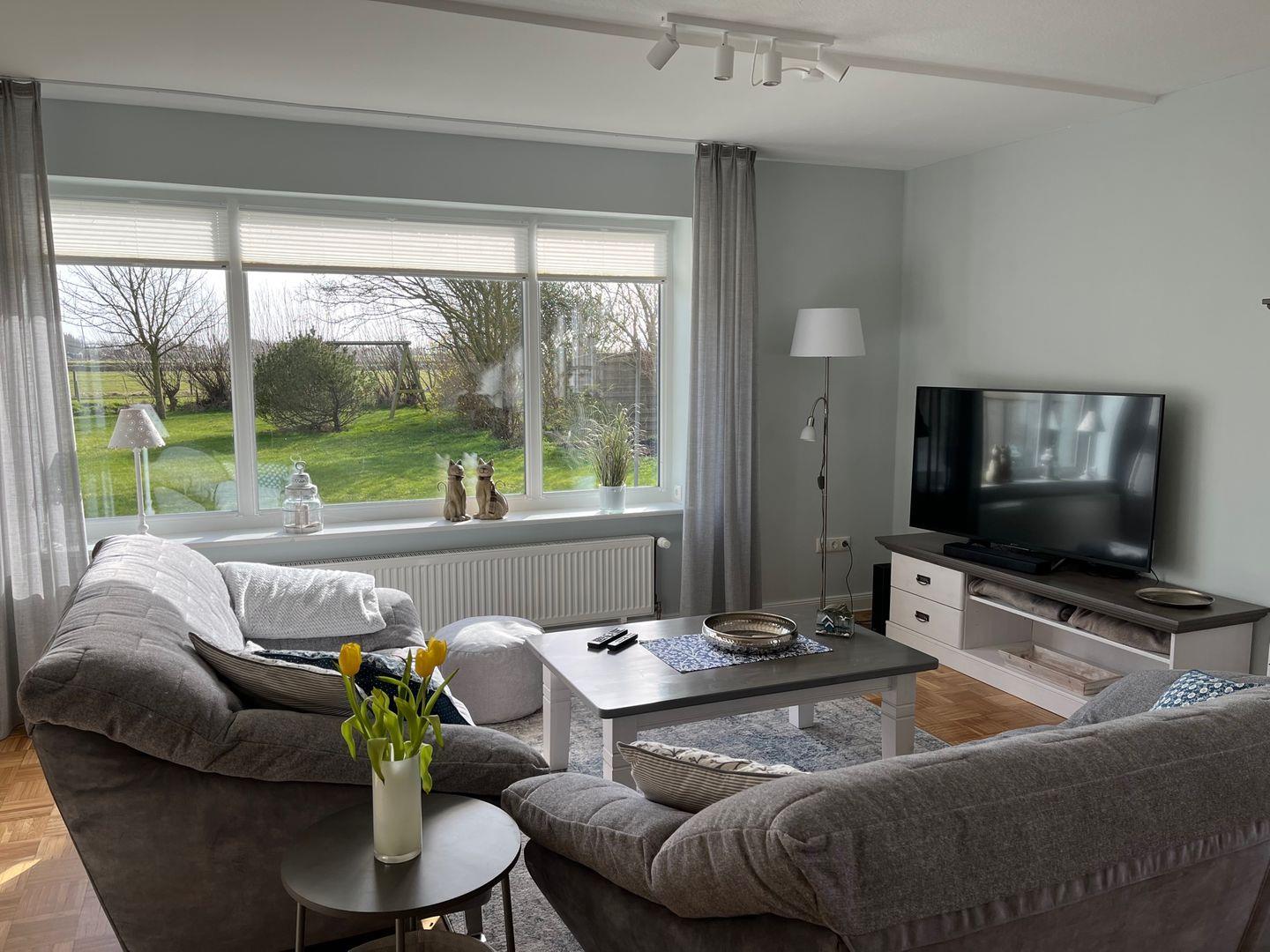 Mariannes Hüs in Borgsum bietet eine großzügige Ferienwohnung mit Kamin, großem Garten und Terrasse für einen erholsamen Urlaub an der Nordsee.