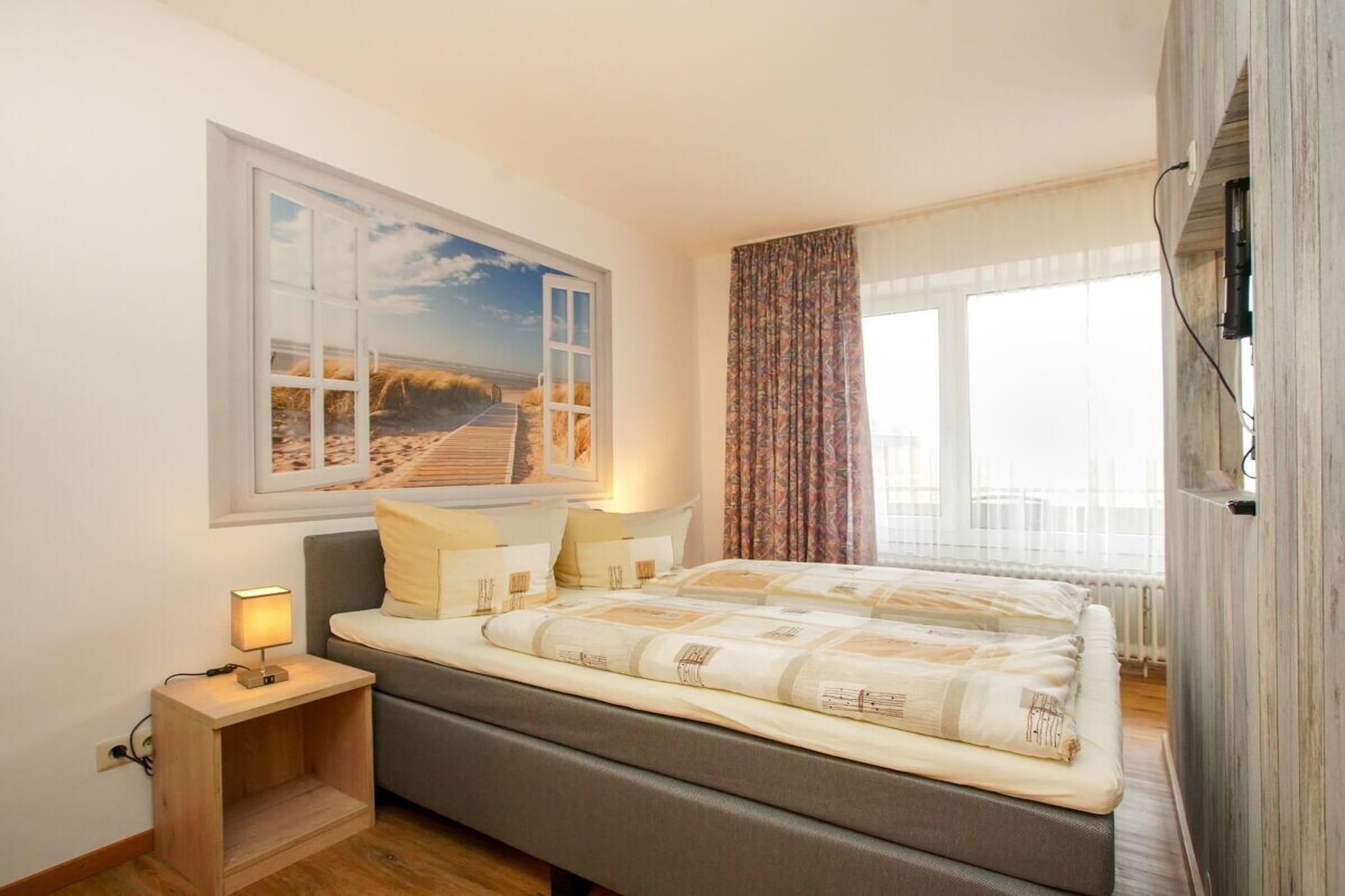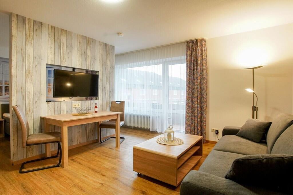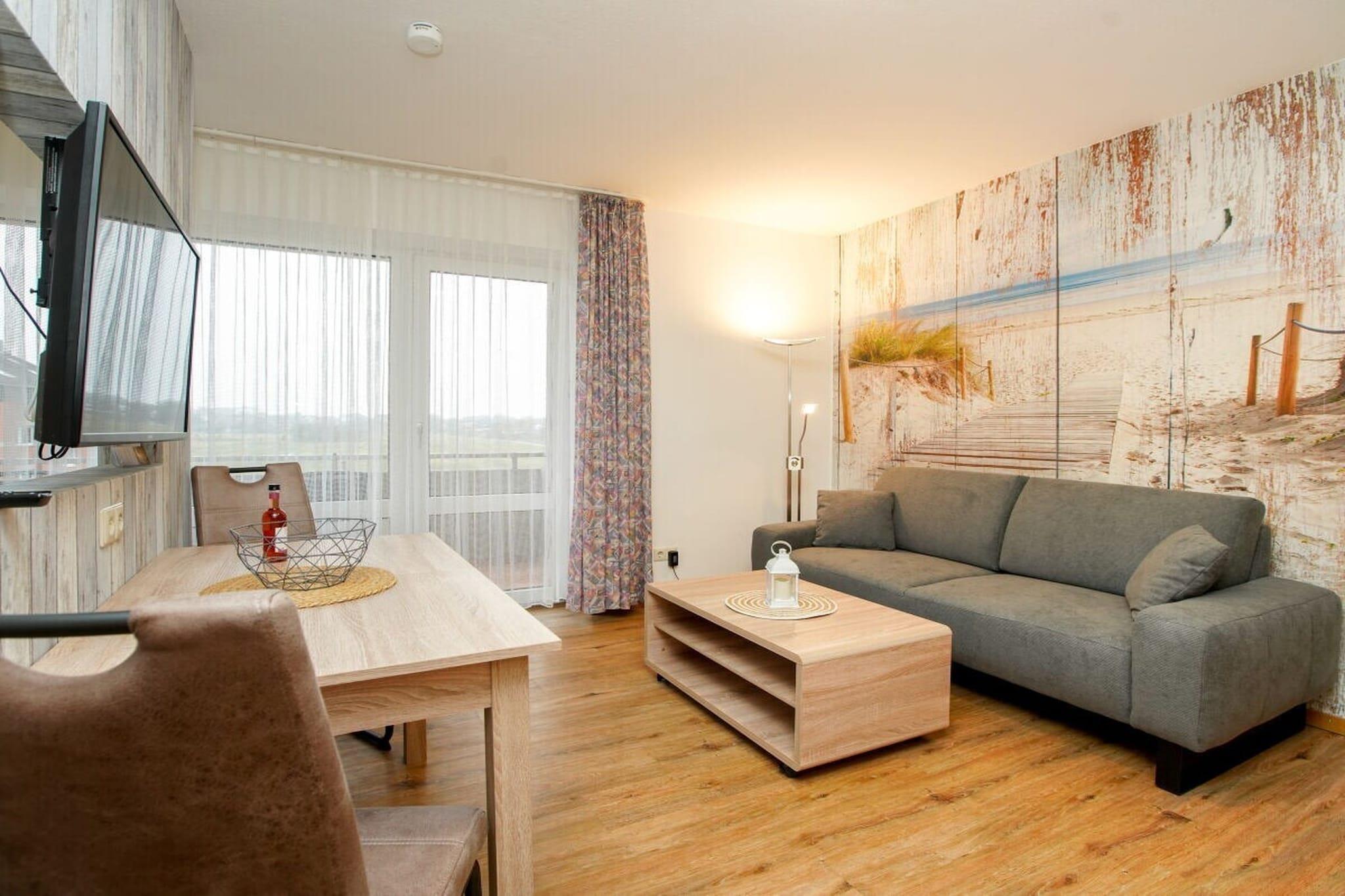 Gemütliche Ferienwohnung auf Borkum mit Balkon, moderner Küche und TV für entspannte Tage zu zweit.
