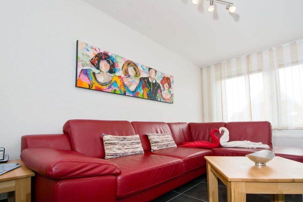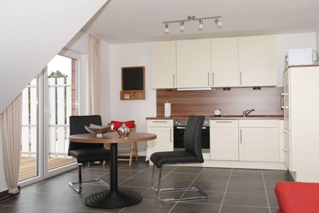 Moderne 55 m² Dachgeschosswohnung auf Borkum mit Dachterrasse, gehobener Ausstattung und WLAN für einen komfortablen Urlaub zu zweit.