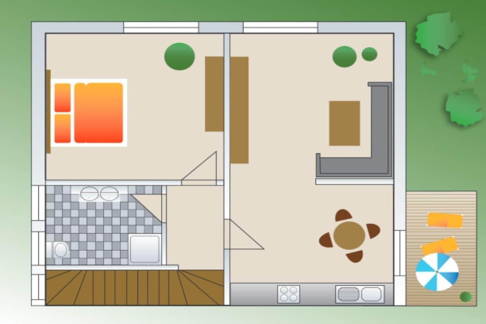 Küche(Kochplatte, Backofen, Mikrowelle, Spülmaschine, Kühlschrank), Wohn/Esszimmer(, TV, Esstisch, DVD-Spieler, Stereoanlage), Schlafzimmer(Doppelbett, TV), Badezimmer(, Toilette, Dusche, Waschbecken), Abstellraum(, Trockner, Waschmaschine, Bügelbrett, Bügeleisen, Trockenschrank), Internet, Internet, Parkplatz, Liegestühle(, Gartenmöbel), Telefon