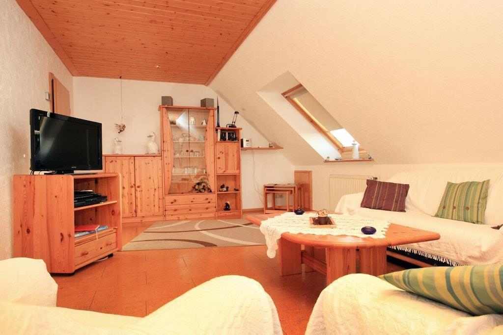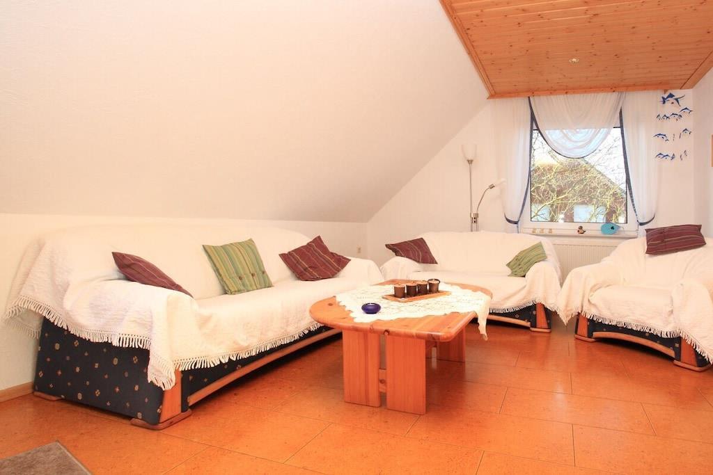 Die Ferienwohnung besteht aus einer Küche mit Spülmaschine Backofen Mikrowelle usw. Einem Wohnzimmer einem Badezimmer und zwei Schlafzimmern für jeweils zwei Personen .Unsere Ferienwohnung ist eine Nichtraucher -Ferienwohnung und keine Haustiere. Kinderbett und Hochstuhl sind auch vorhanden.