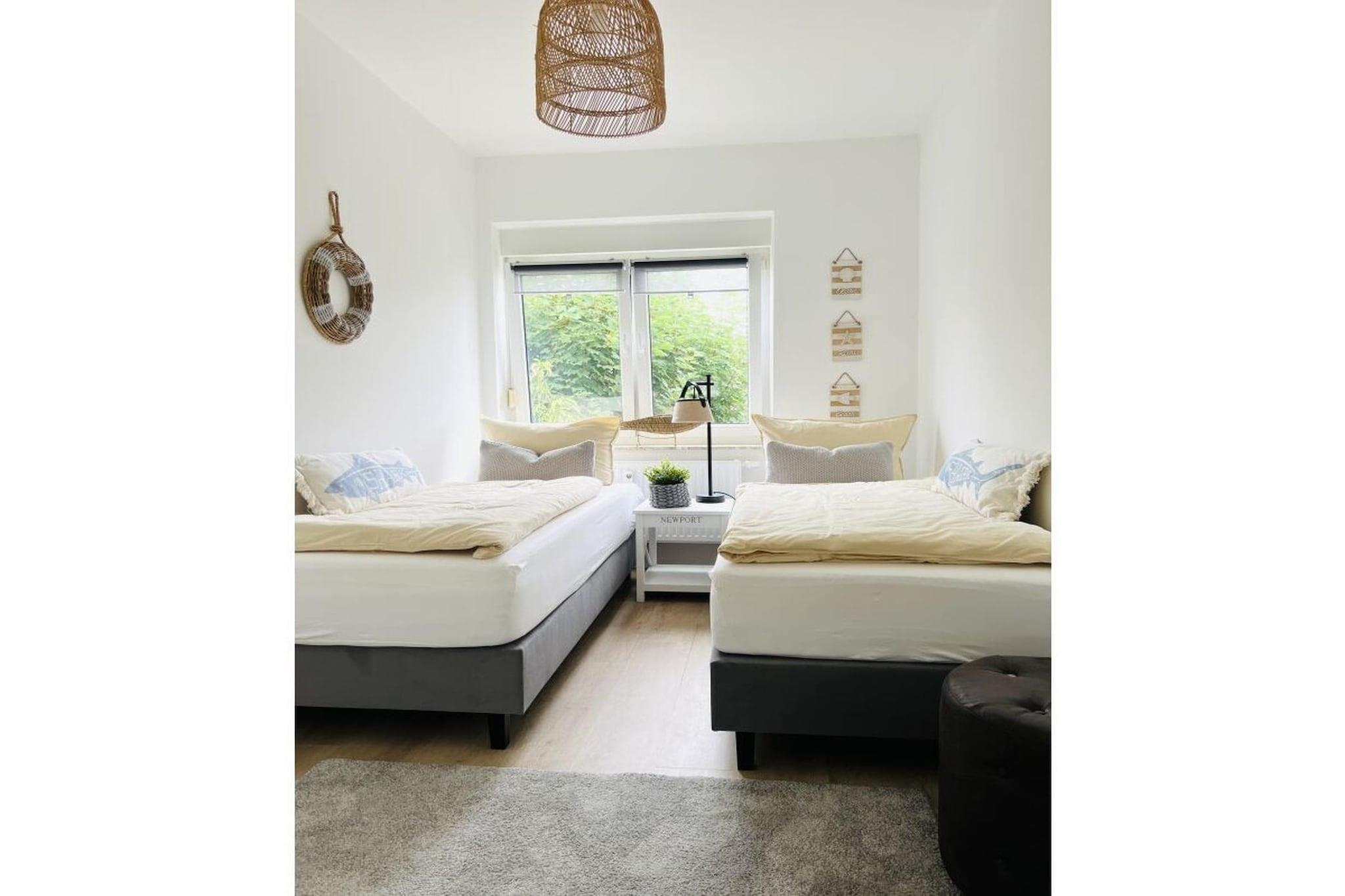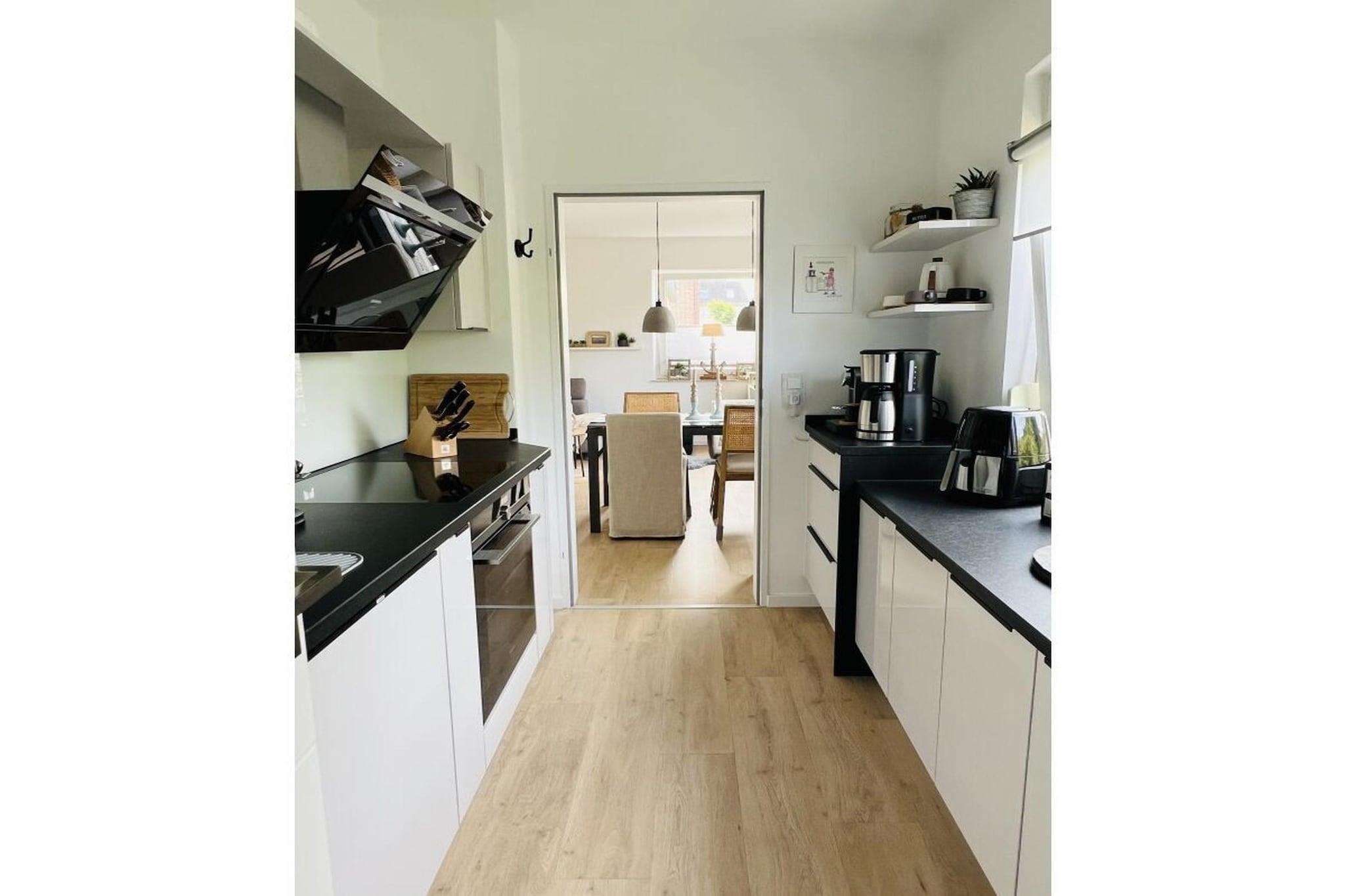 Die Wohnung "Lütje Kaap" bietet einen Ruhepol mit eigenem Garten, in dem die Geräuschkulisse durch das Rauschen der Brandung und das Kreischen der Möwen dominiert wird. Trotz ruhiger Lage sind die wichtigsten Orte der Inselstadt schnell fußläufig erreichbar. Diese exzellente Wohnlage ist ein optimaler Ausgangspunkt für Ihren Aufenthalt auf Borkum. Die Boxspringbetten ermöglichen erholsame Nächte - Die Betten sind in den Größen 1,60 x 2 Meter und 2x 0,90 x 2 Meter groß und verfügen über durchgehende Topper für maximalen Komfort. Die zwei Schlafzimmer sind darüber hinaus mit Leseleuchten, Steckdosen am Bett sowie geräumigen Schränken ausgestattet. Die Küche bietet Ihnen Vollausstattung. Sie sind somit vollkommen unabhängig von Speisekarten und Öffnungszeiten auch wenn die besten Lokale der Insel direkt in der näheren Umgebung angesiedelt sind. Zur Vollausstattung gehören insbesondere: Kühl- und Gefrierschrank, Geschirrspüler, Induktionskochfelder mit Dunstabzug, Backofen und Mikrowelle, Kaffee- und Nespressomaschine, Wasserkocher, Toaster, unterschiedliche Töpfe und Pfannen, Eierkocher, Waffeleisen, Standmixer, Messerblock und Kochbuch, Sandwichtoaster, Heißluftfriteuse, Küchenmaschine. Selbstverständlich finden Sie auch eine Auswahl an Wein- und Sektgläsern – und da wir uns immer noch in Ostfriesland befinden, auch ein Teegedeck vor. Die sanierten Bäder ermöglichen hygienische Reinheit und makellose Sauberkeit bei leichter Pflege. Handtücher, Föhnvarianten und Handtuchwärmer gehören zur Grundausstattung. Neben dem Vollbad mit großzügigen Duschbereich, gibt es ein weiteres getrenntes WC. Im Wohnbereich befinden sich ein Smart-TV. Auf allen Geräten können Sie den Streamingdienst Netflix kostenlos (im Mietpreis enthalten) nutzen. Podcasts und Playlists können über das Audiosystem von Marshall abgespielt werden. Ein WLAN-Netzwerk steht selbstverständlich von privater Nutzung bis zur Workation bereit. Über den Wohnbereich gelangen Sie auf die Terrasse. Dort befindet sich neben einer Sitzgruppe und dem Strandkorb ein Kohlegrill. Die Terrasse ist mit einem Wind- und Sichtschutz, sowie mit einem Sonnenschirm ausgestattet. Von der Terrasse gelangen Sie durch den wohnungseigenen Garten über einen seitlichen Fußweg an die Straße. Von dort aus dauert es ca. zwei Minuten bis zur Hauptpromenade am Nordstrand. Exklusiver Wattnflair-Standard: Neben dem Strandkorb auf der Terrasse können Sie auch kostenlos einen Strandkorb am Nordstrand nutzen (NUTZUNG ERST AB 2026 MÖGLICH). Zur Wohnung gehört auch ein PKW- und Fahrradparkplatz. Fahrräder können auch in der Tiefgarage geparkt werden. Zusätzlich finden Sie dort einen Bollerwagen für Ausflüge oder Einkäufe - ACHTUNG, DIESER KANN AUCH VON UNSERER NACHBARWOHNUNG BENUTZT WERDEN UND MÖGLICHERWEISE IM GEBRAUCH SEIN! Im Keller des Hauses befinden sich auch Waschmaschine und Trockner (Münzbetrieb). Im Haushalt finden Sie zudem Wäscheständer, Bügelbrett und Bügeleisen, Staubsauger, Reinigungsmittel, sowie einen Verbandskasten. Für die Lütje Borkumabenteuerer können Sie bei Bedarf ein Reisebett und einen Hochstuhl erhalten – ohne Zuzahlung.