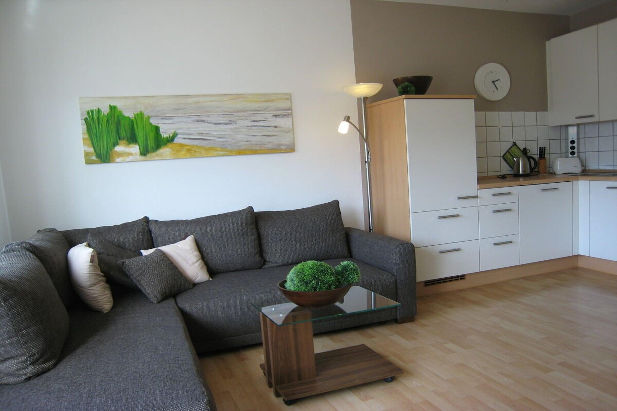 Moderne Ferienwohnung auf Borkum mit Balkon und nur 2 Minuten zum Strand, ideal für einen erholsamen Inselurlaub.