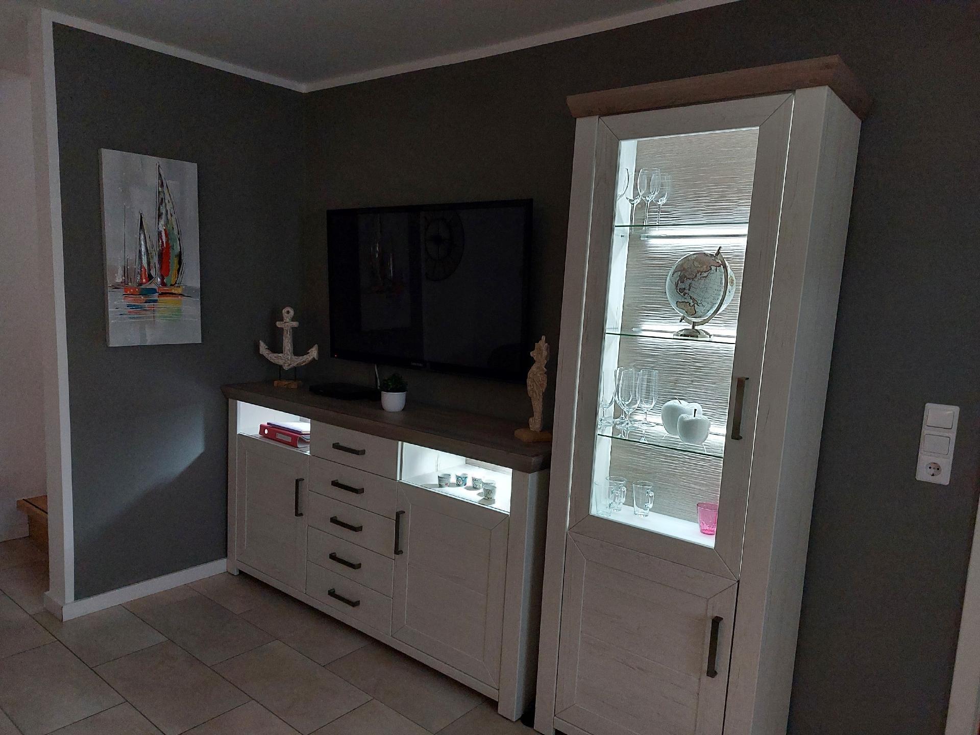 In der Wohnung werden Sie sich auf ca. 69 qm Wohnfläche, alles auf einer Ebene, wohlfühlen. Die Quadratmeter teilen sich auf in 2 Schlafzimmer, 1 Dusch-Badezimmer, einem großzügigen offenen Wohn-/ Ess-/ und Küchenbereich und einen Abstellraum. Zusätzlich gibt es eine ca. 15 qm große Dachterrasse, die über eine Treppe aus der Wohnung erreichbar ist. Schlafmöglichkeiten sind für maximal 6 Erwachsene vorhanden, wobei sich 2 Personen mit einer ausziehbaren Couch im Wohnzimmer begnügen müssten (140 cm breit). Die Schlafzimmer verfügen über ein Doppelbett bzw. über zwei Einzelbetten. Die Bestuhlung im Essbereich ist für 6 Personen ausgelegt, das Geschirr und das Besteck für 12 Personen. Die Küche bietet alles was man benötigen könnte, wie Spülmaschine, Kühlschrank, Gefrierschrank, Backofen, Herd, Kaffeemaschine und vieles mehr. Im Badezimmer befindet sich eine Waschmaschine. Im Abstellraum finden Sie alles was zur Wäsche oder zur Wohnungsreinigung erforderlich ist. Die Wohnung verfügt im Wohnzimmer und in den beiden Schlafzimmern über einen Flachbildfernseher in unterschiedlichen Größen, so dass für verschiedene Personen verschiedene Programme gleichzeitig zur Verfügung stehen.Die Wohnung ist eine „Nichtraucherwohnung“, ein Haustier darf mitgebracht werden. Ihre Lieblinge dürfen aber nicht auf die Couch oder in die Betten.