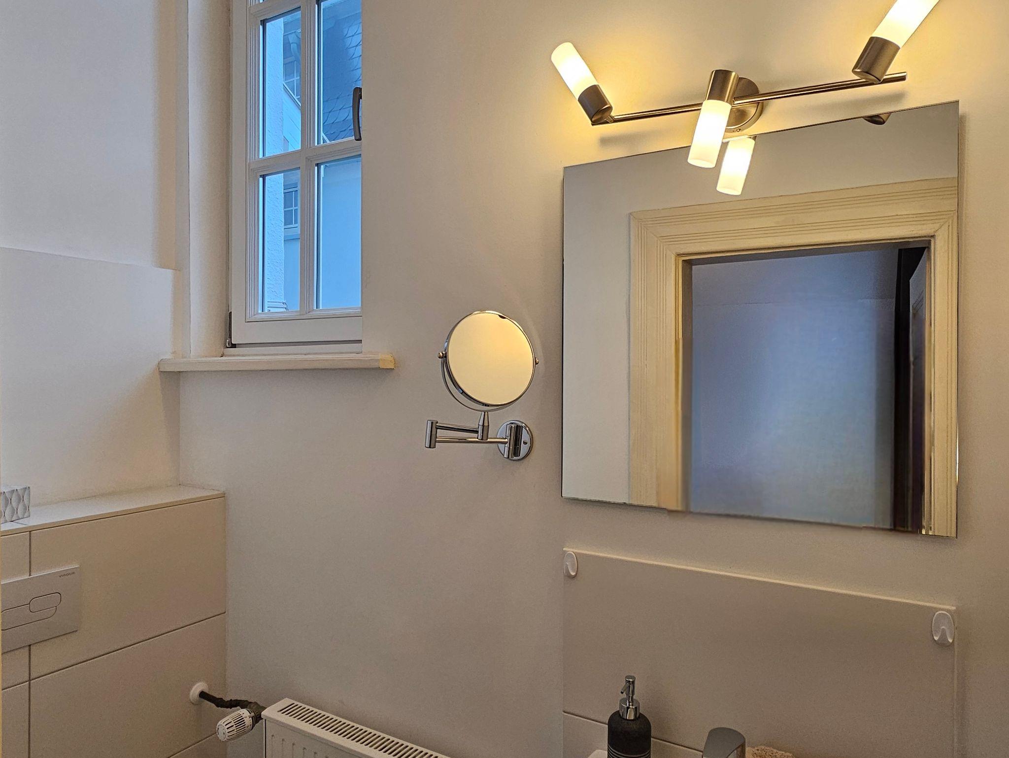 - Badezimmer mit Kosmetikspiegel und Haartrockner