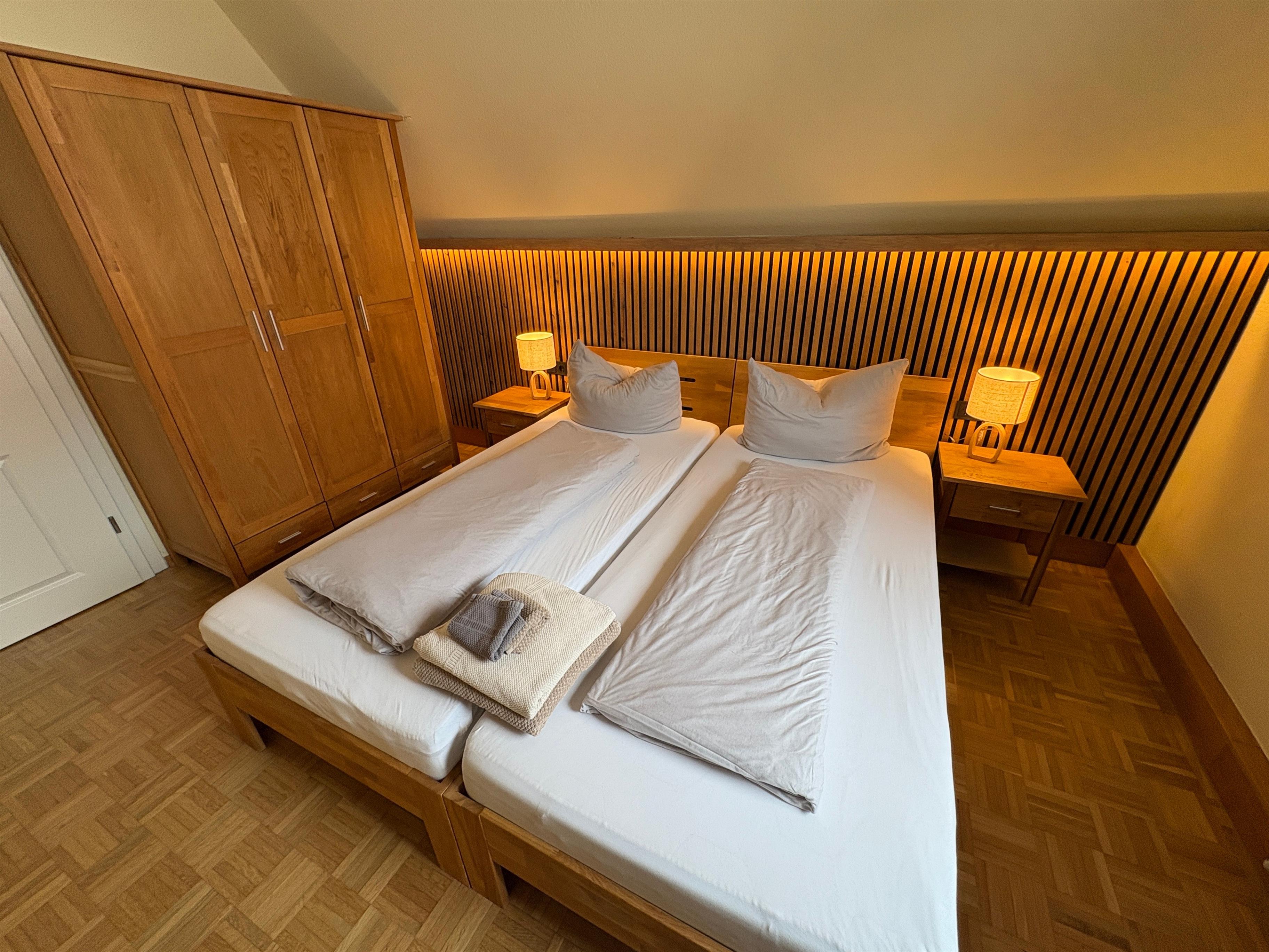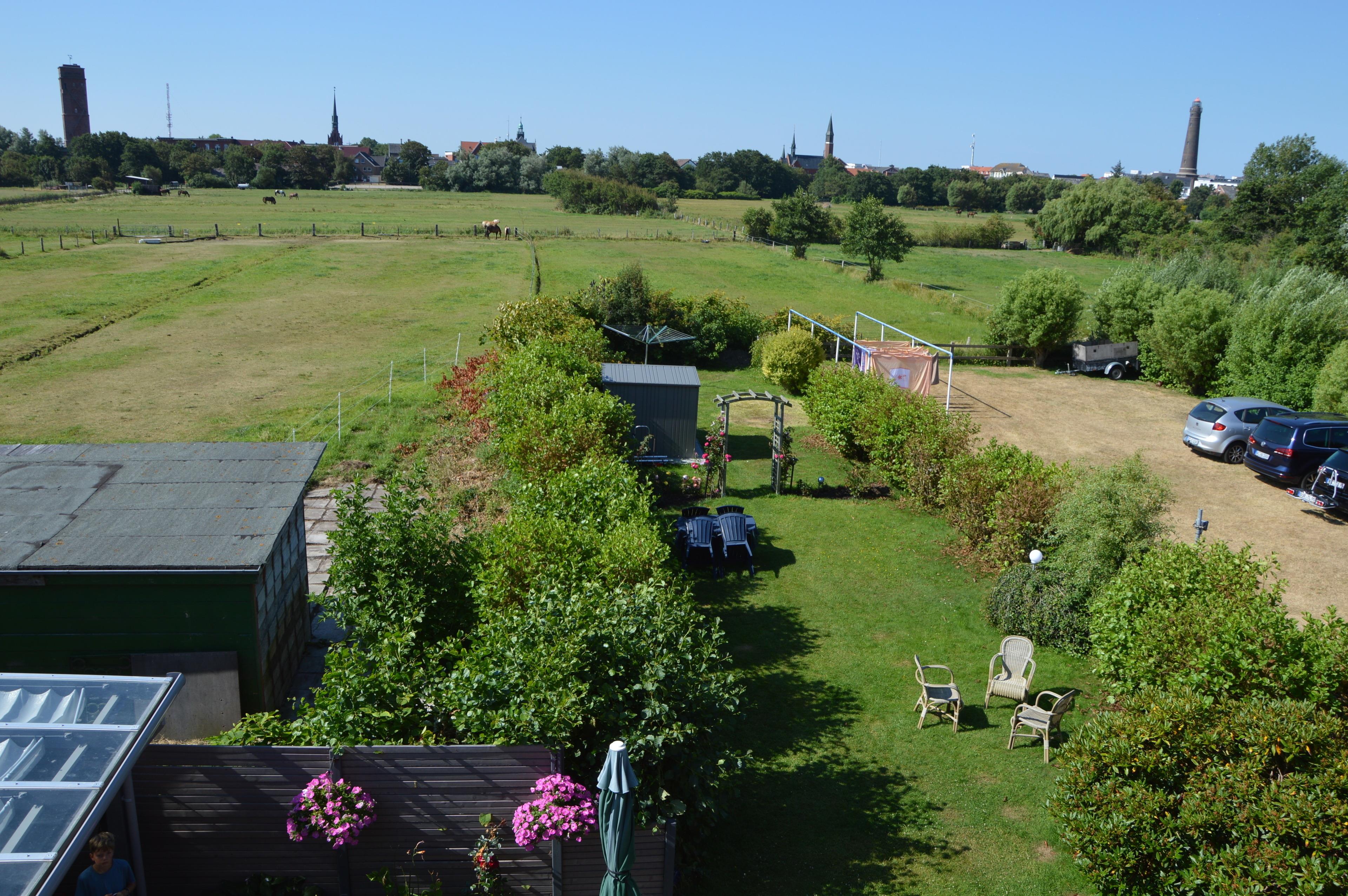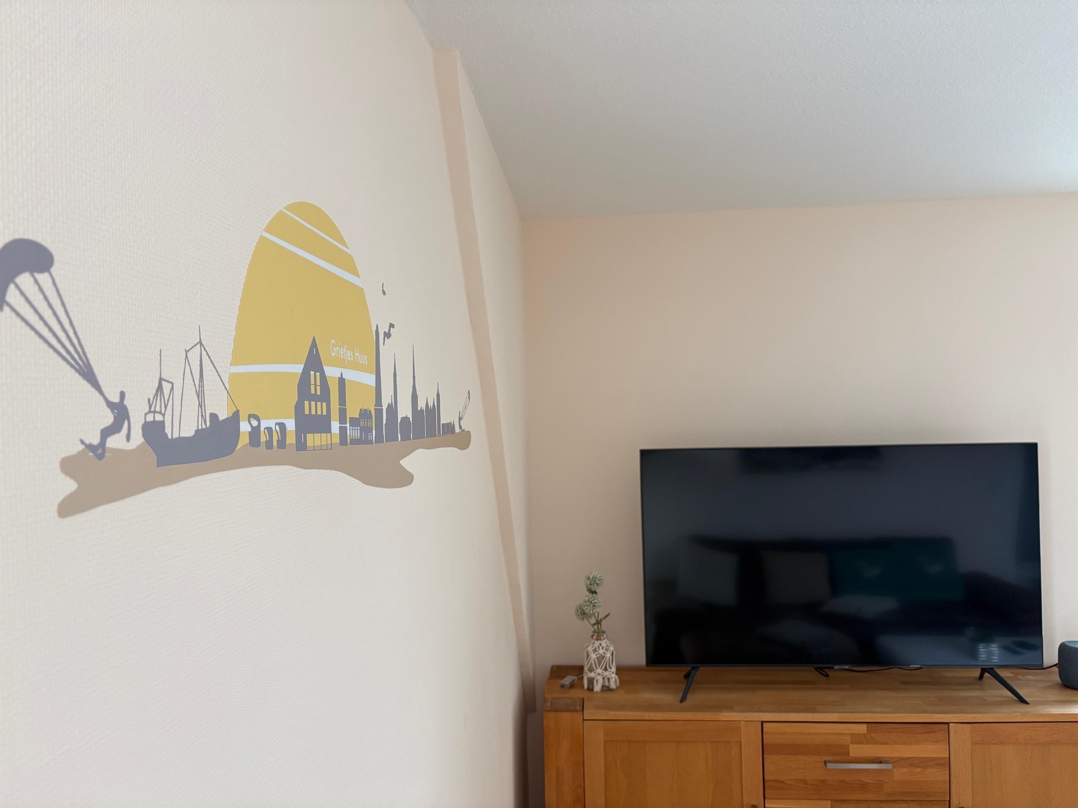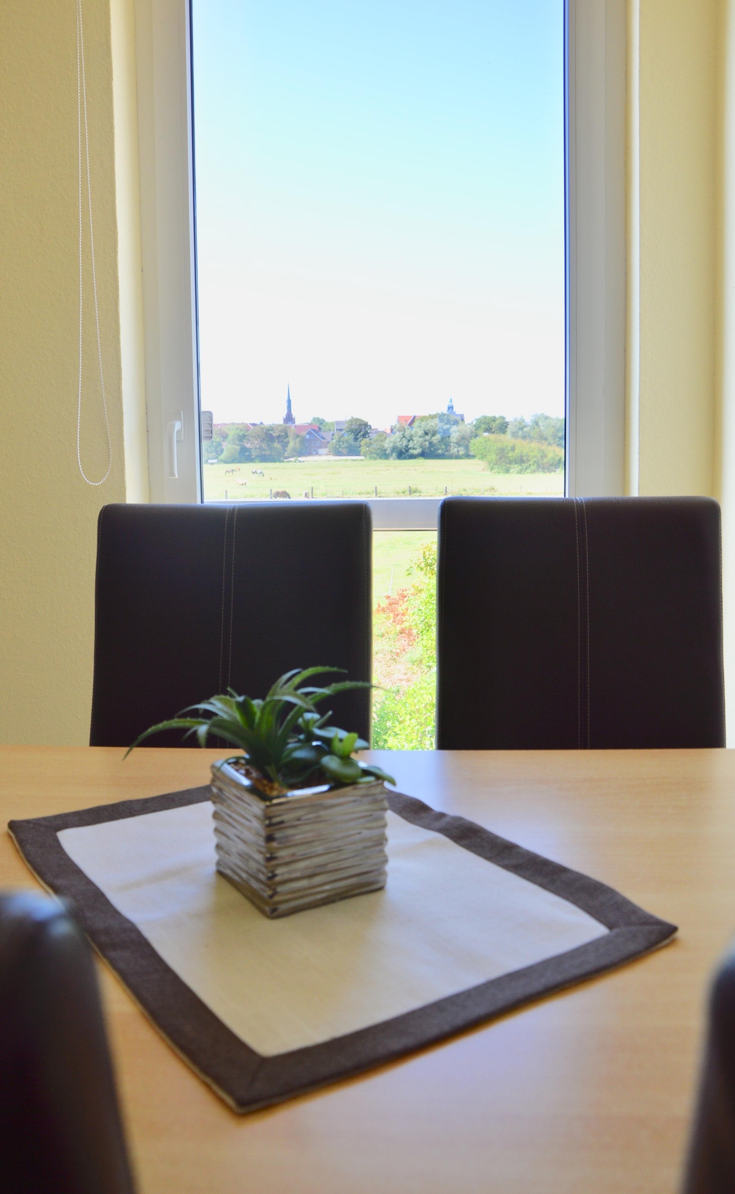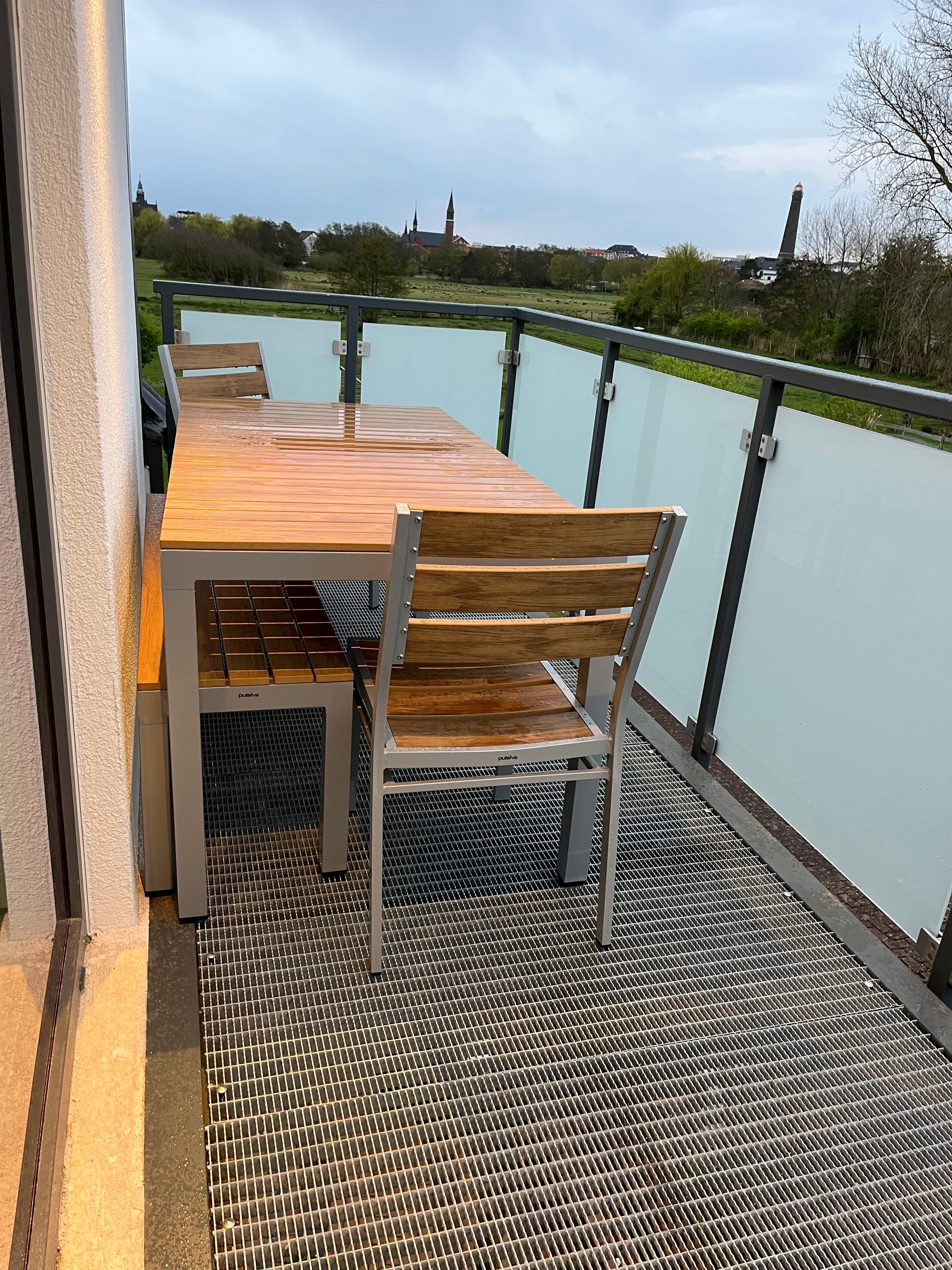 In der Obergeschosswohnung „Binnenwiese“ erwartet Sie ein traumhafter Ausblick: Ob beim Frühstück in der lichtdurchfluteten Küche, im Wohnbereich oder auf dem Balkon – hier genießen Sie ein einzigartiges Panorama über die Binnenwiese mit Blick auf Rathaus, katholische Kirche und den Alten Leuchtturm.