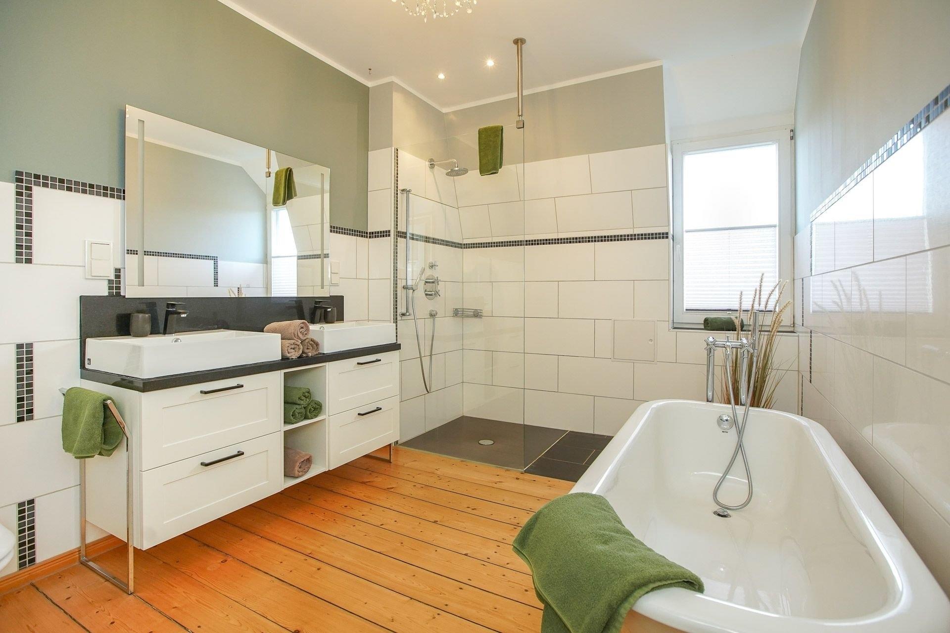 Die liebevolle Einrichtung ist ein Mix aus Modernem und Antiquitäten und sorgt für ein herrliches Ambiente. Im unteren Bereich der Maisonettenwohnung erwartet Sie der große Wohnbereich mit Sofa, TV und Blue-Ray-Player zum entspannen. Außerdem die Küche mit Geschirrspüler und Ceran-Kochfeld sowie ein Schlafzimmer mit King-Size-Doppelbett und das Bad mit freistehender Badewanne, Dusche und WC.