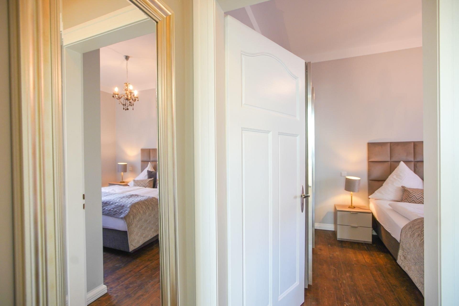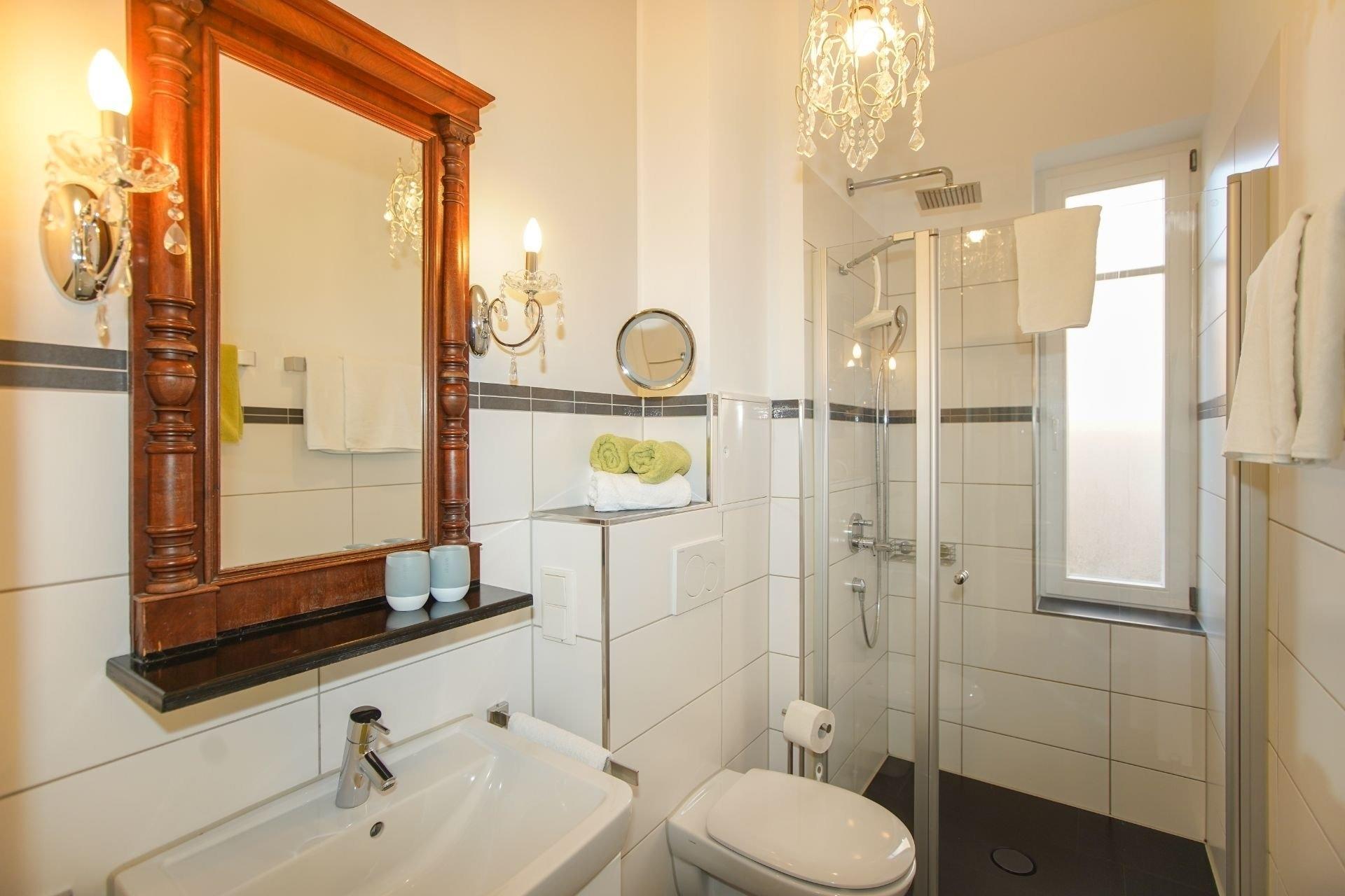 Es erwartet Sie ein heller freundlicher Wohn-Essbereich mit gemütlichen Sofas, nettem Essbereich sowie antiker Dekoration, die viel Charme versprüht. In den zwei Schlafzimmern, eins mit Doppelbett und eins mit Einzelbett, können Sie wunderbar erholsam von einem erlebnisreichen Urlaubstag träumen. Im modernen Tageslicht Badezimmer finden Sie eine Dusche, WC und ein Waschbecken mit Spiegel vor.