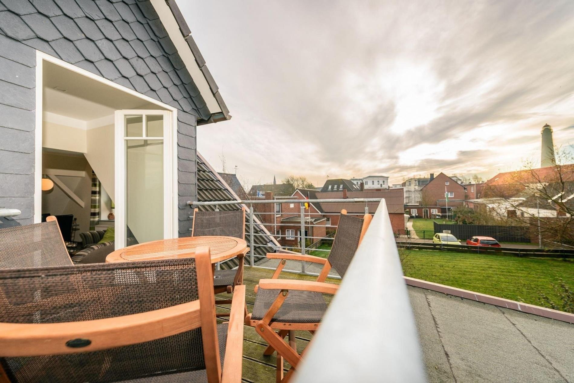Der Balkon sorgt für entspannte Abende nach einem langen Strandtag und haben den Borkumer Leuchttürme im Blick.