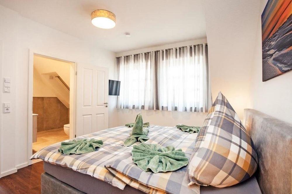 Die geräumige Ferienwohnung verfügt über drei gemütliche Schlafzimmer, alle ausgestattet mit komfortablen Doppelbetten. Jedes Schlafzimmer ist mit einem eigenen Badezimmer ausgestattet, sodass Privatsphäre garantiert ist. Die separate Küche bietet alles, was man für die Selbstverpflegung benötigt, einschließlich Geschirrspüler, Elektro- und Gasherd, Backofen, Mikrowelle, Kühlschrank und Gefriermöglichkeit. Das helle Wohnzimmer lädt zum Entspannen ein und verfügt über einen TV und kostenfreies WLAN. Parkmöglichkeiten stehen direkt vor dem Haus zur Verfügung. Die Ferienwohnung ist ideal für Gruppen oder Familien, die einen erholsamen Urlaub in gemütlicher Atmosphäre verbringen möchten. Die zentrale Lage ermöglicht es, die Umgebung zu erkunden und die Sehenswürdigkeiten der Region zu entdecken. Genießen Sie einen unvergesslichen Aufenthalt in dieser gut ausgestatteten Ferienwohnung.