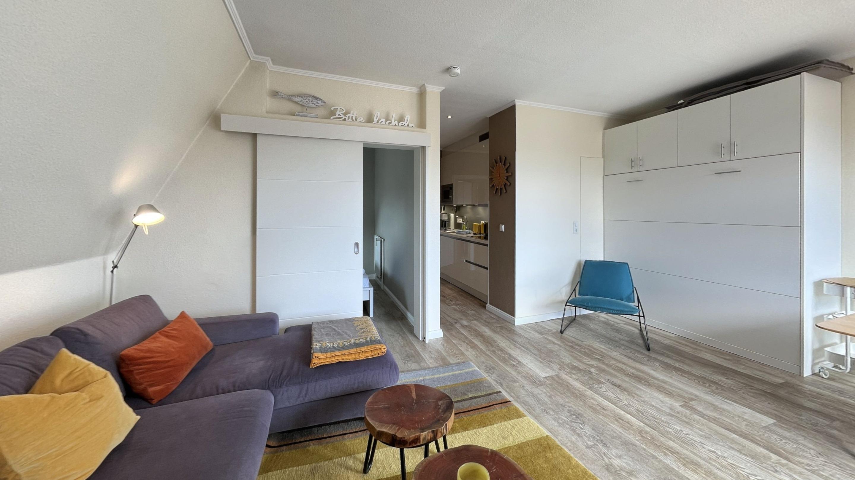 Die gemütliche 50 m² große 2-Zimmer-Ferienwohnung ist für bis zu 4 Personen geeignet. Besonders hervorzuheben ist die mit Liebe zum Detail ausgewählte Einrichtung und der sonnige Balkon des Apartments. Hier könnt ihr herrlich entspannen und die Nordseeluft genießen.