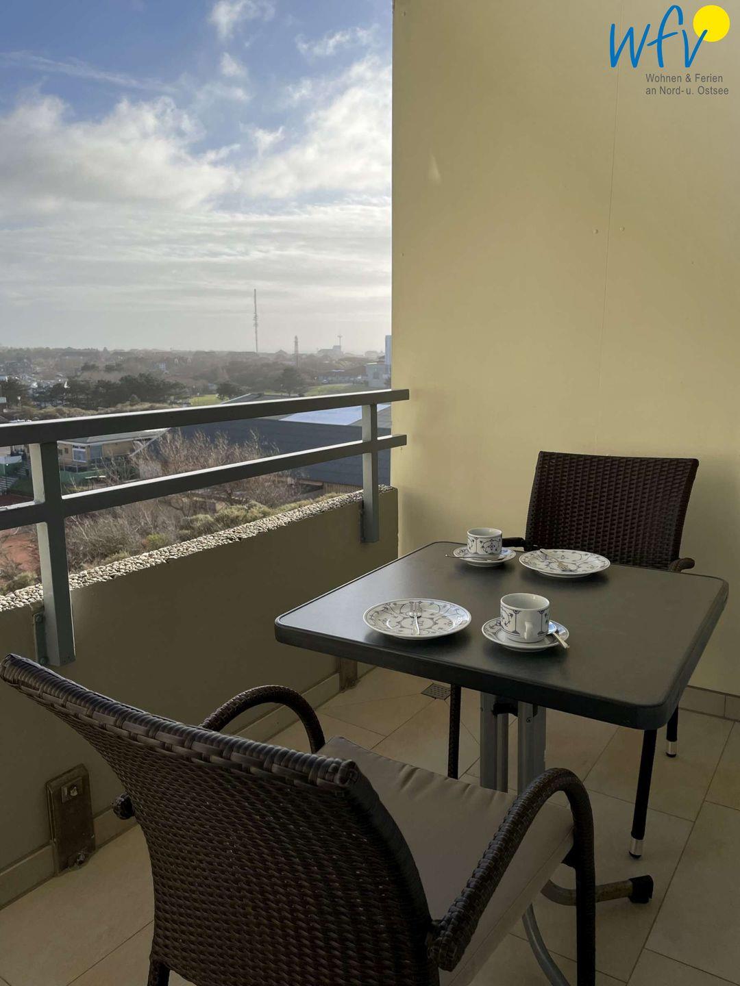 Träumen Sie davon, in Ihrem Borkum-Urlaub frische Nordseeluft zu schnuppern? Sich die Sonne ins Gesicht scheinen zu lassen? Oder abends den Ferientag bei einem guten Glas Wein ausklingen zu lassen? Auf dem möblierten Balkon mit eingeschränktem Meerblick können Sie herrliche Zeiten verbringen. Das ist pures Urlaubsfeeling!