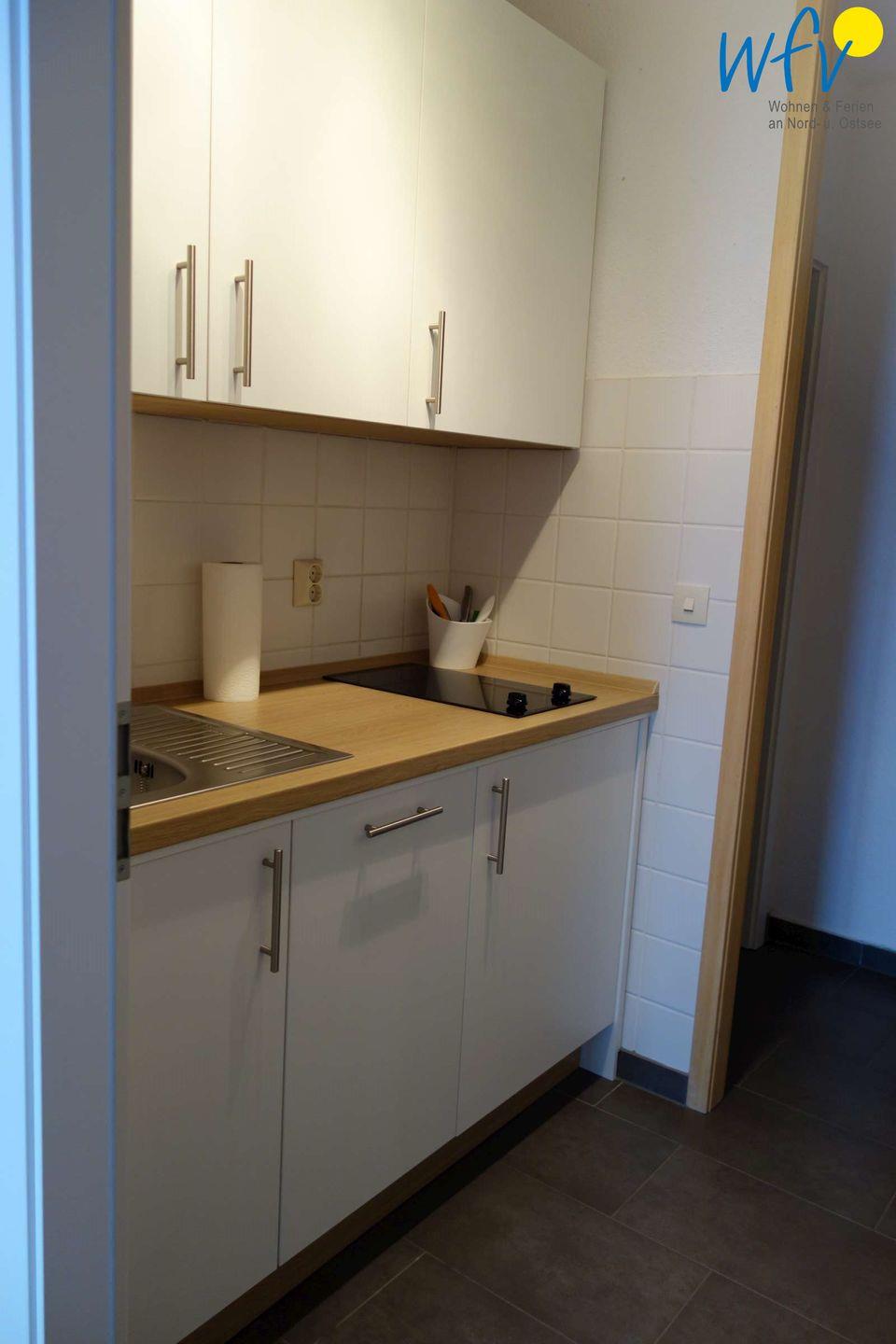 Damit Sie sich bequem selbst verpflegen können, verfügt die Ferienwohnung auf Borkum über eine gut ausgestattete Küche - u.a. mit einem Zwei-Platten-Ceranherd, einem Backofen, einem Kühlschrank mit Gefrierfach und einer Spülmaschine. Ebenso sind diverse Kleingeräte wie Kaffeemaschine, Wasserkocher und Toaster vorhanden.