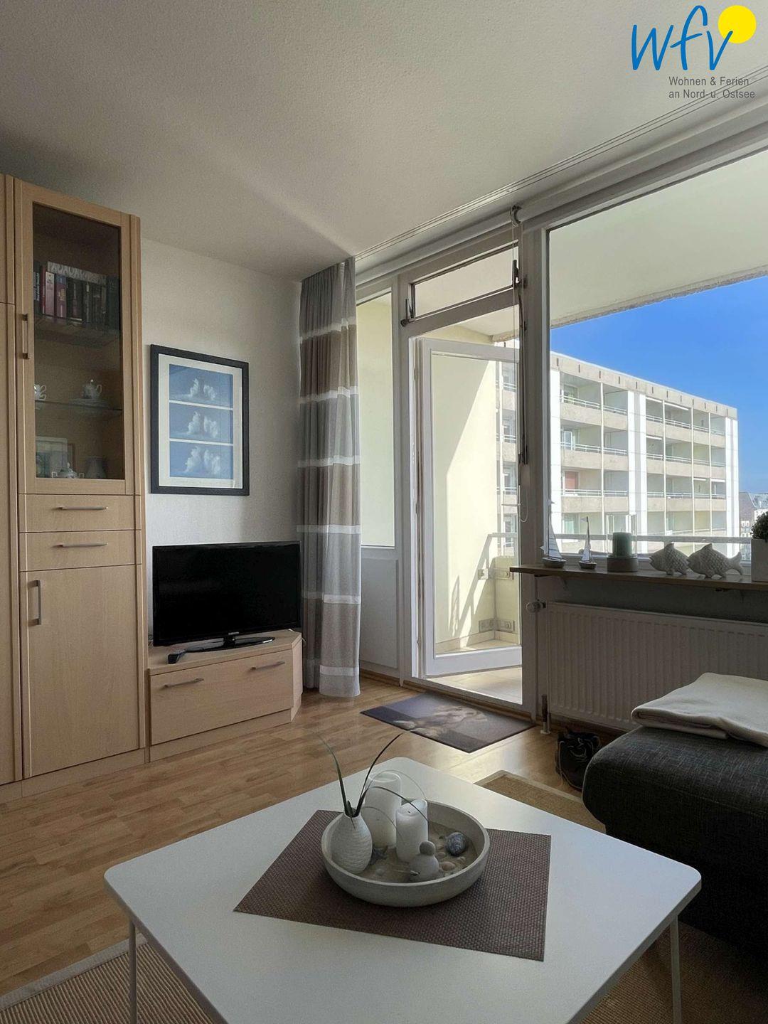 Gemütliche Ferienwohnung mit Balkon und eingeschränktem Meerblick auf Borkum, ideal für erholsame Tage an der Nordsee.