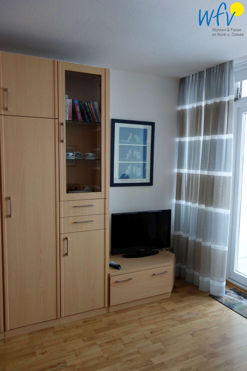 Durch ihre Lage im dritten Stock haben Sie von der Wohnung aus einen weiten Ausblick über einen großen Teil der Insel Borkum! Die Ferienwohnung verfügt über einen großzügigen Wohnraum mit Essbereich und Couchecke, eine Küchenzeile und ein Duschbad. Zwei leicht ausklappbare Schrankbetten ( 90 x 200 cm) im Wohnraum sorgen für angenehmen Schlafkomfort.