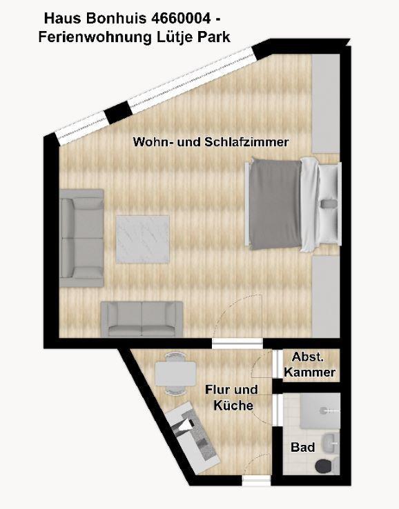 Genießen Sie einen erholsamen Urlaub auf Borkum! Unsere Ferienwohnung "Lütje Park" mit großzügigem Wohnraum-/Schlafraum, kleiner Küche und Duschbad lädt zu entspannten Tagen ein.