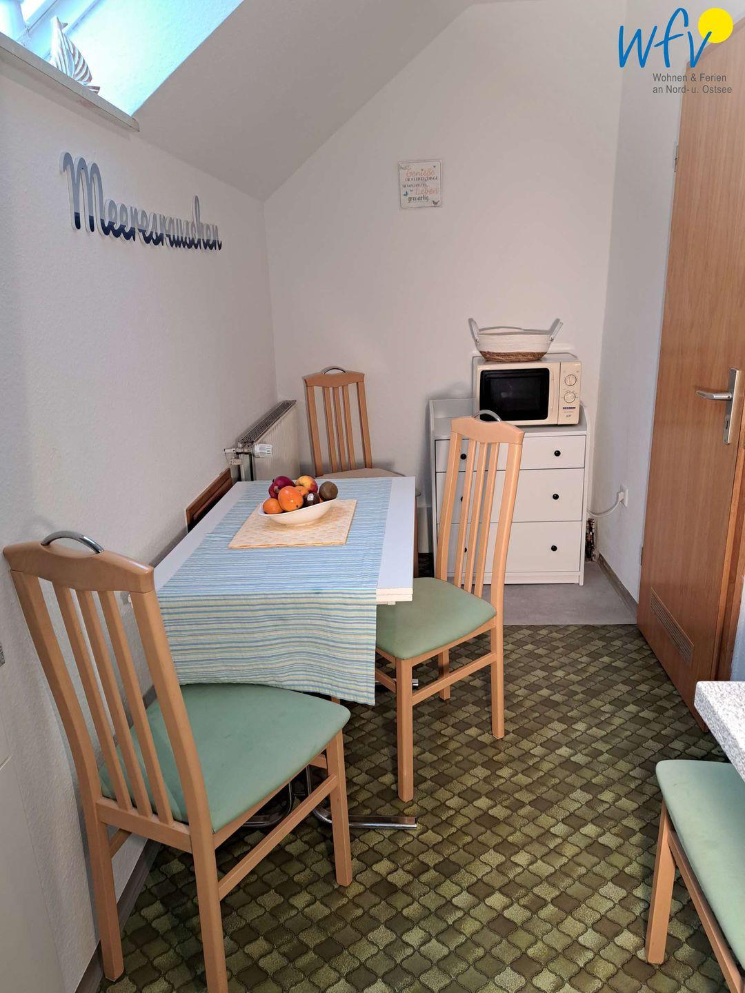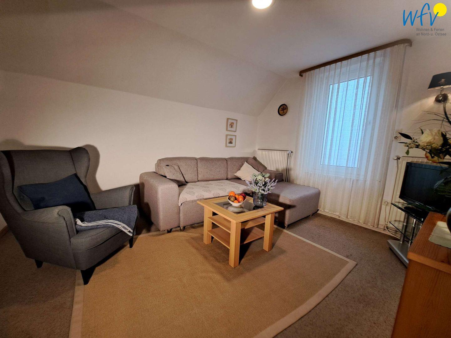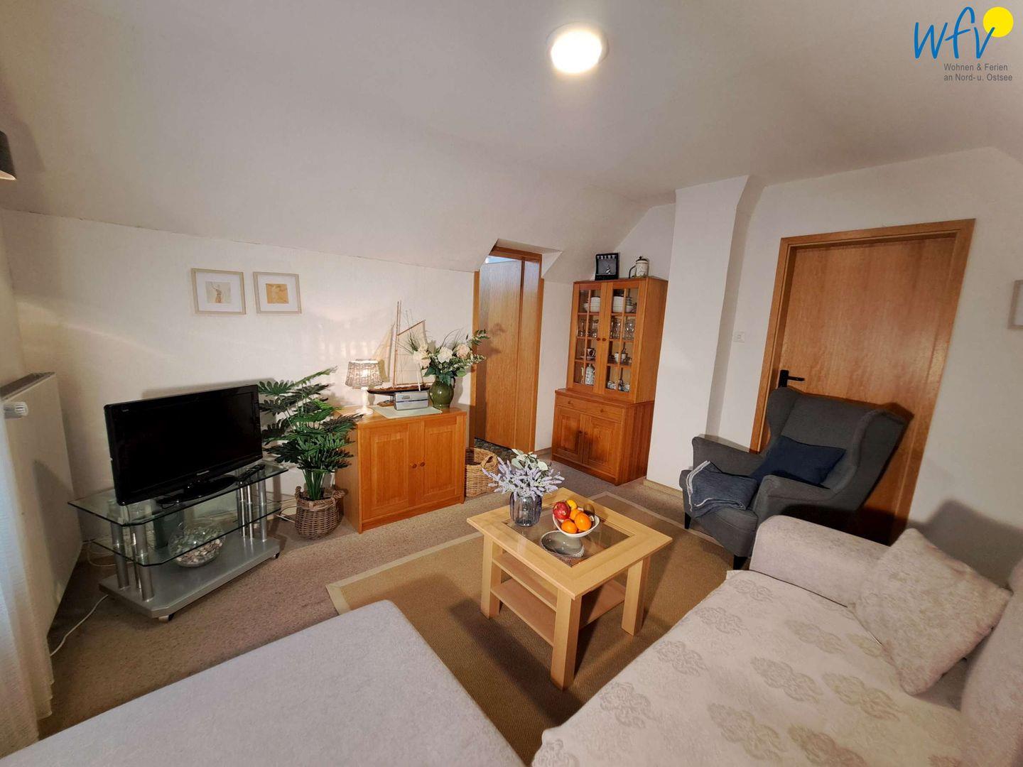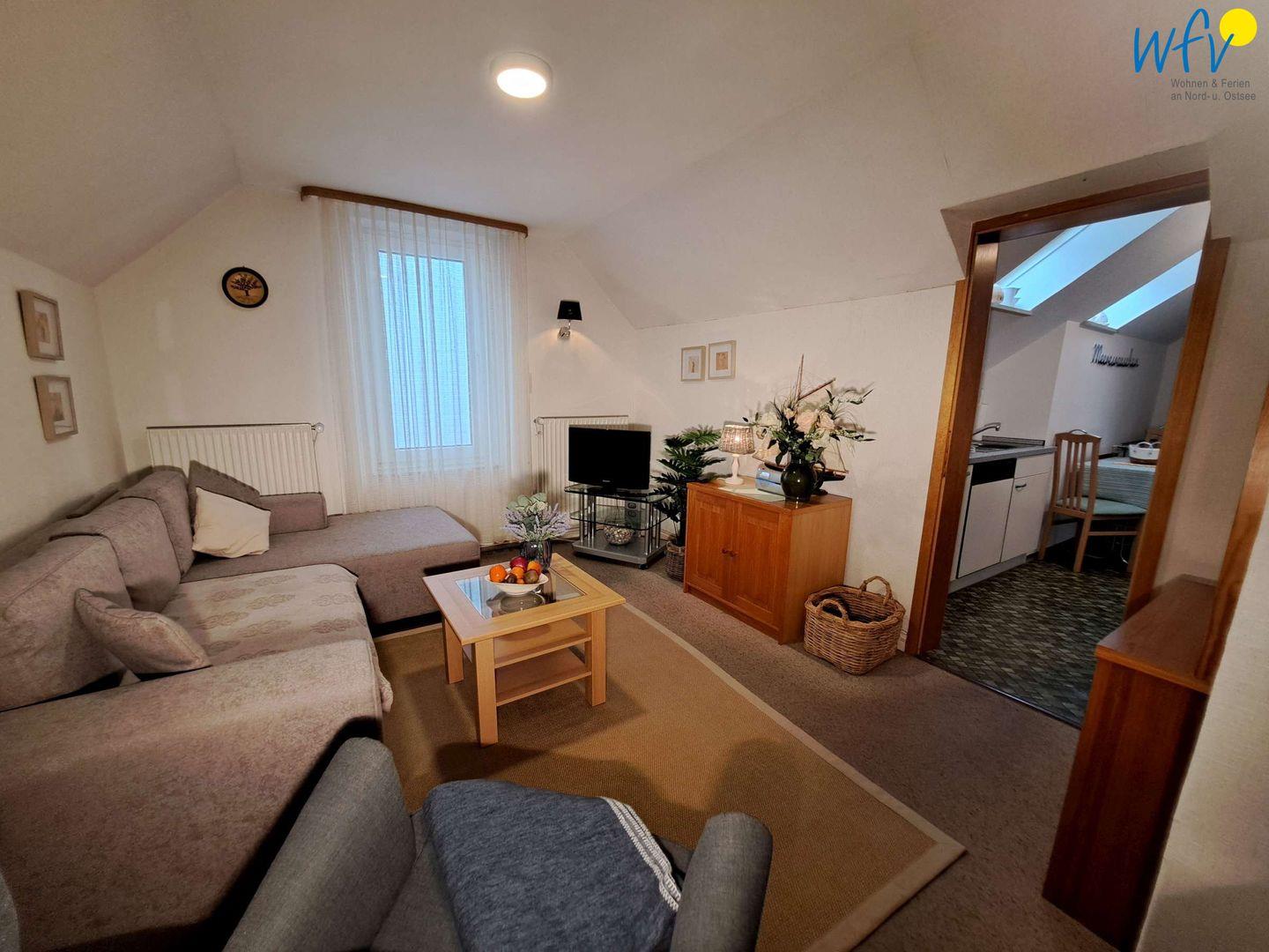 Ob nach dem Strandtag oder der Fahrradtour - in dem gemütlichen Wohnraum mit bequemer Couchecke, TV (28 Zoll) und Radio können Sie ausgiebig relaxen. Für gemeinsame Mahlzeiten ist ein Essplatz vorhanden.