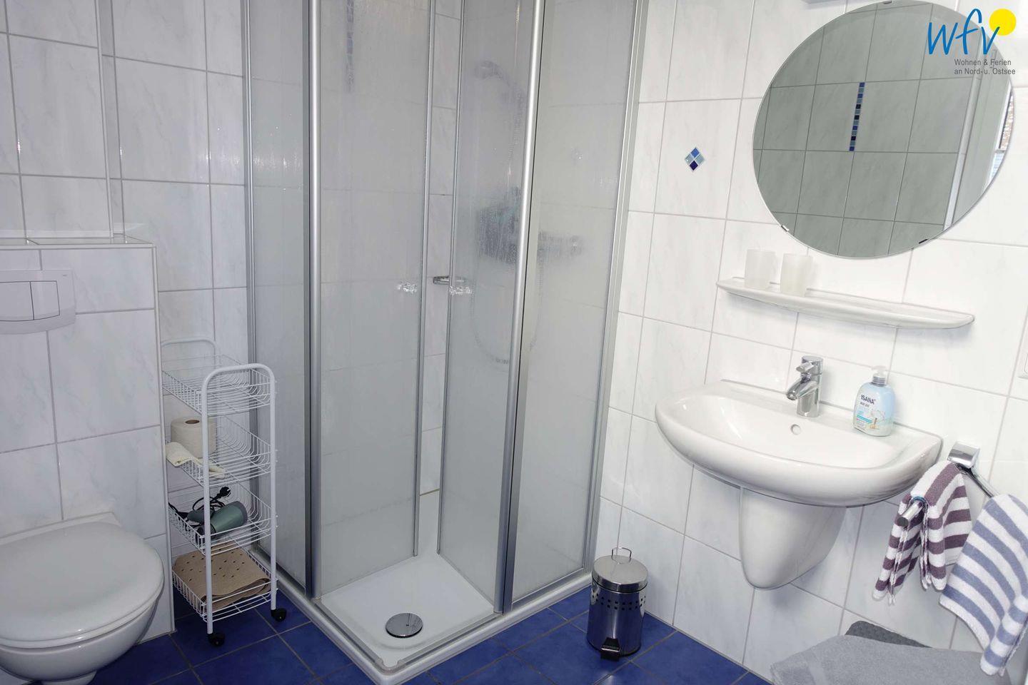 Das gepflegte Tageslichtbad mit Dusche bietet weiteren Wohnkomfort.