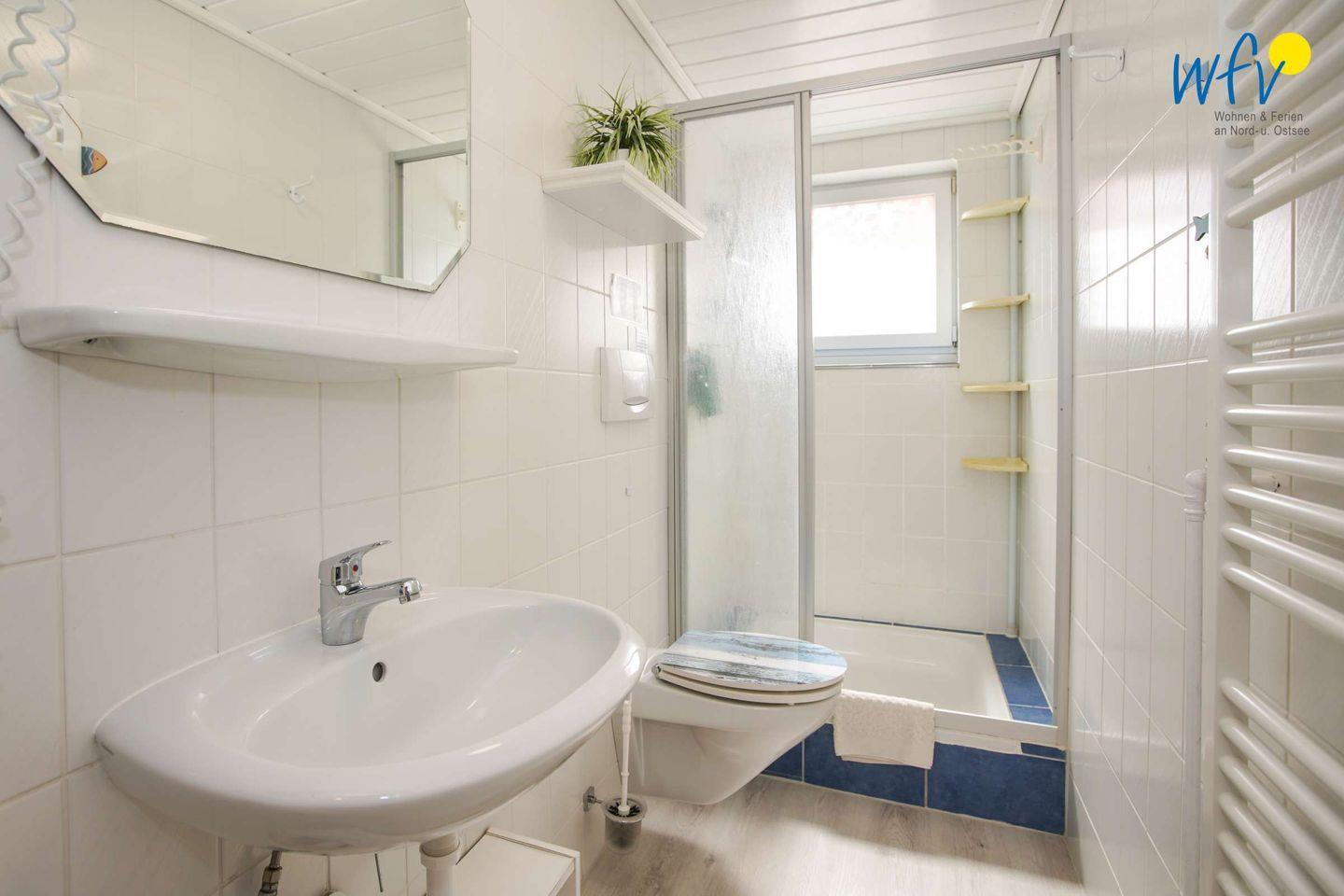 Das gepflegte Duschbad ergänzt den angenehmen Wohnkomfort.