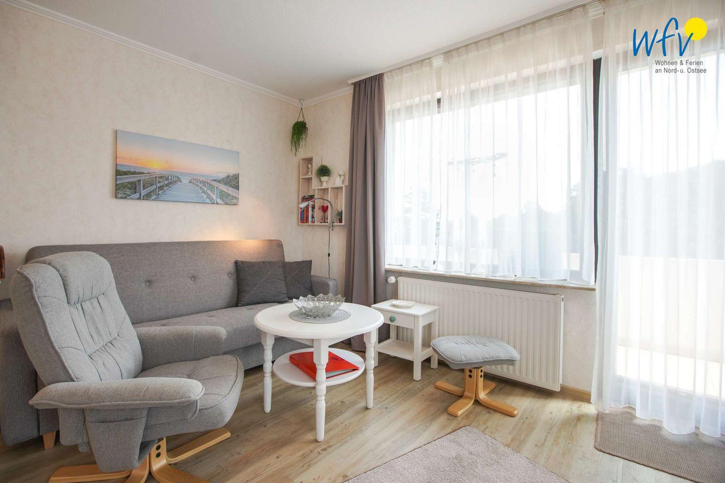 Gemütliche Ferienwohnung Seestern mit Süd-Balkon auf Borkum für erholsame Tage zu zweit.