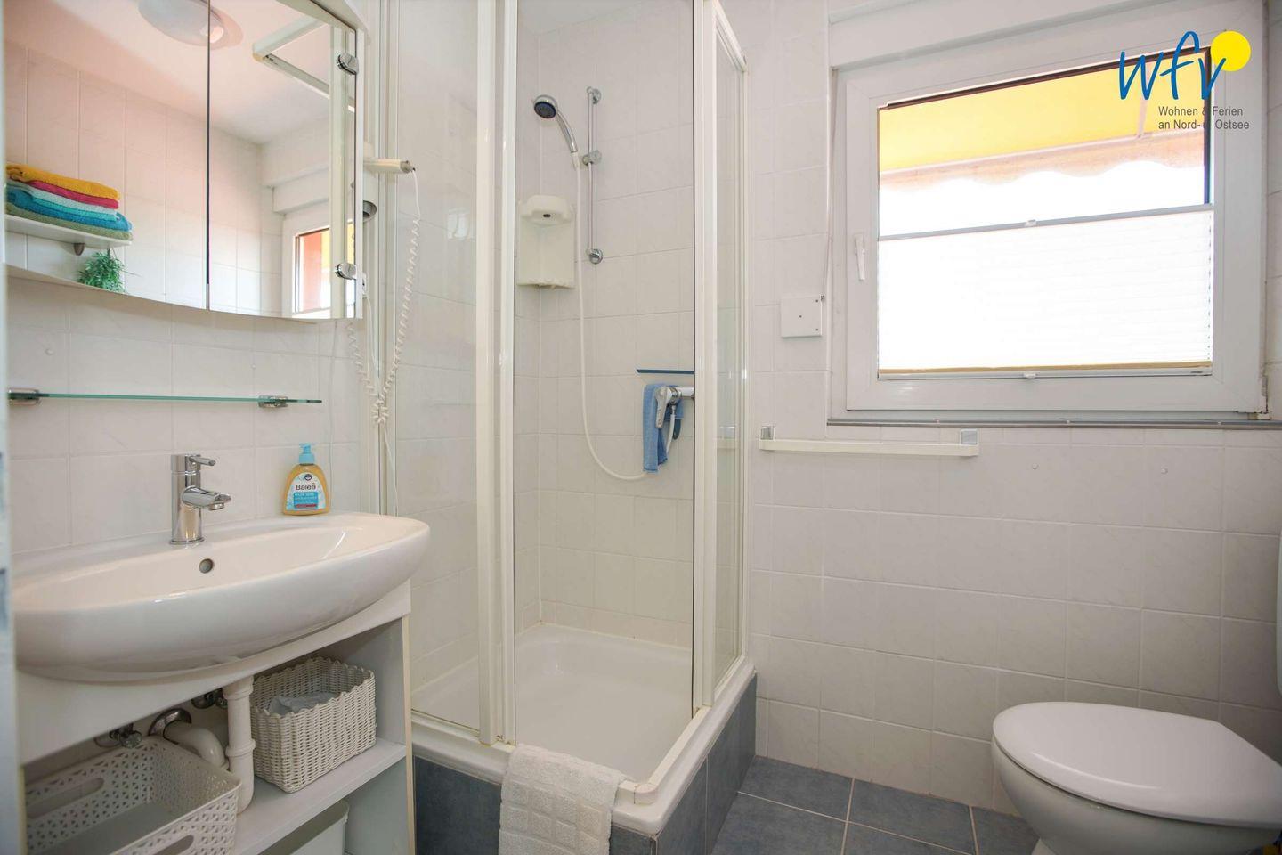 Das gepflegte Duschbad ergänzt den angenehmen Wohnkomfort.