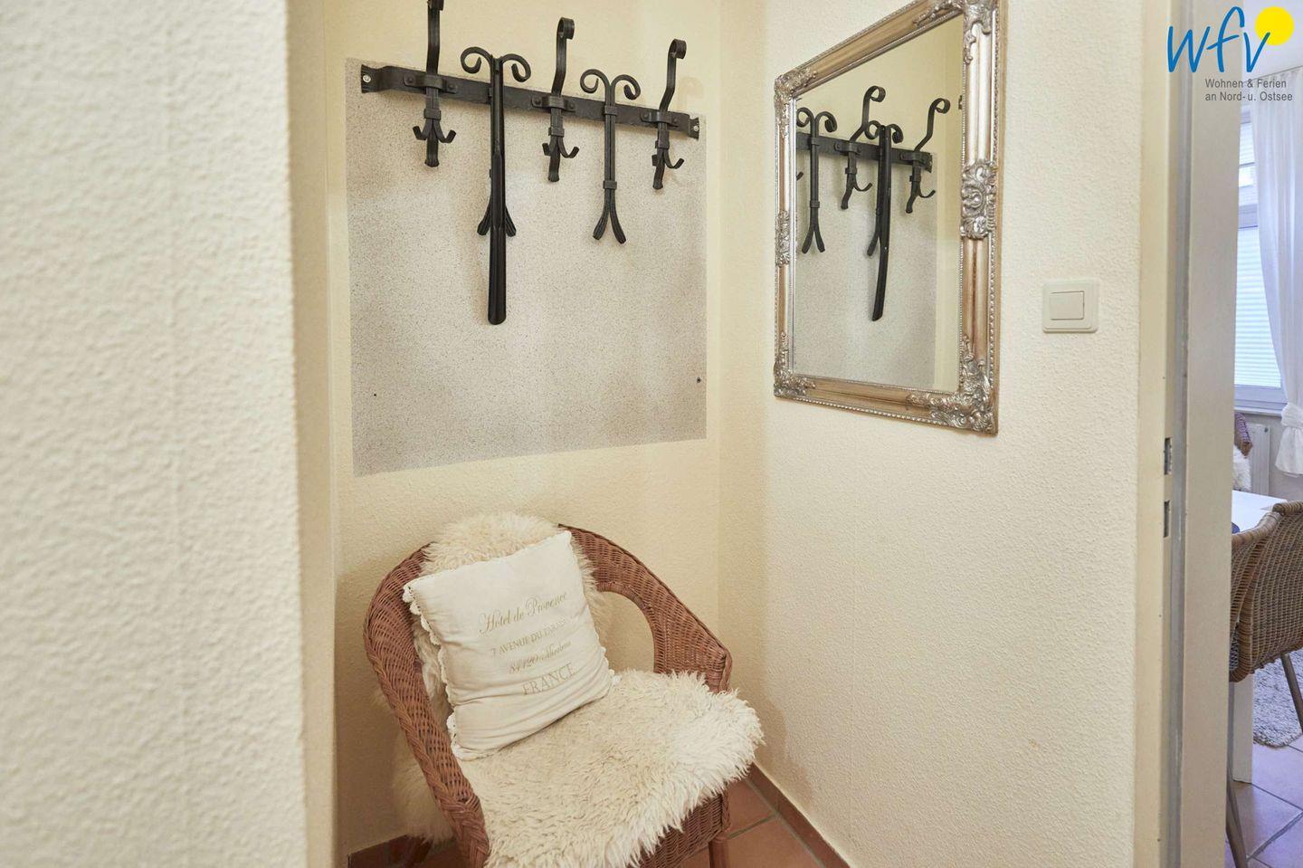 Ob nach der Fahrradtour oder dem Strandtag - im gemütlichen Wohnraum der Ferienwohnung werden Sie sich rundum wohlfühlen! Während der große Esstisch zu gemeinsamen Mahlzeiten oder lustigen Spieleabenden einlädt, lockt die Sitzecke mit Couch, Sesseln und Schaukelstuhl zum ausgiebigen Relaxen sowie zum Lesen und Filme schauen. Zum Surfen vom Smartphone aus empfangen Sie freies WLAN.