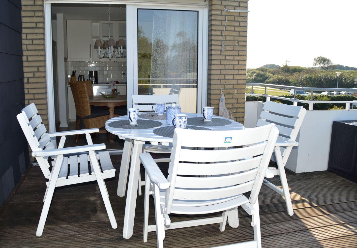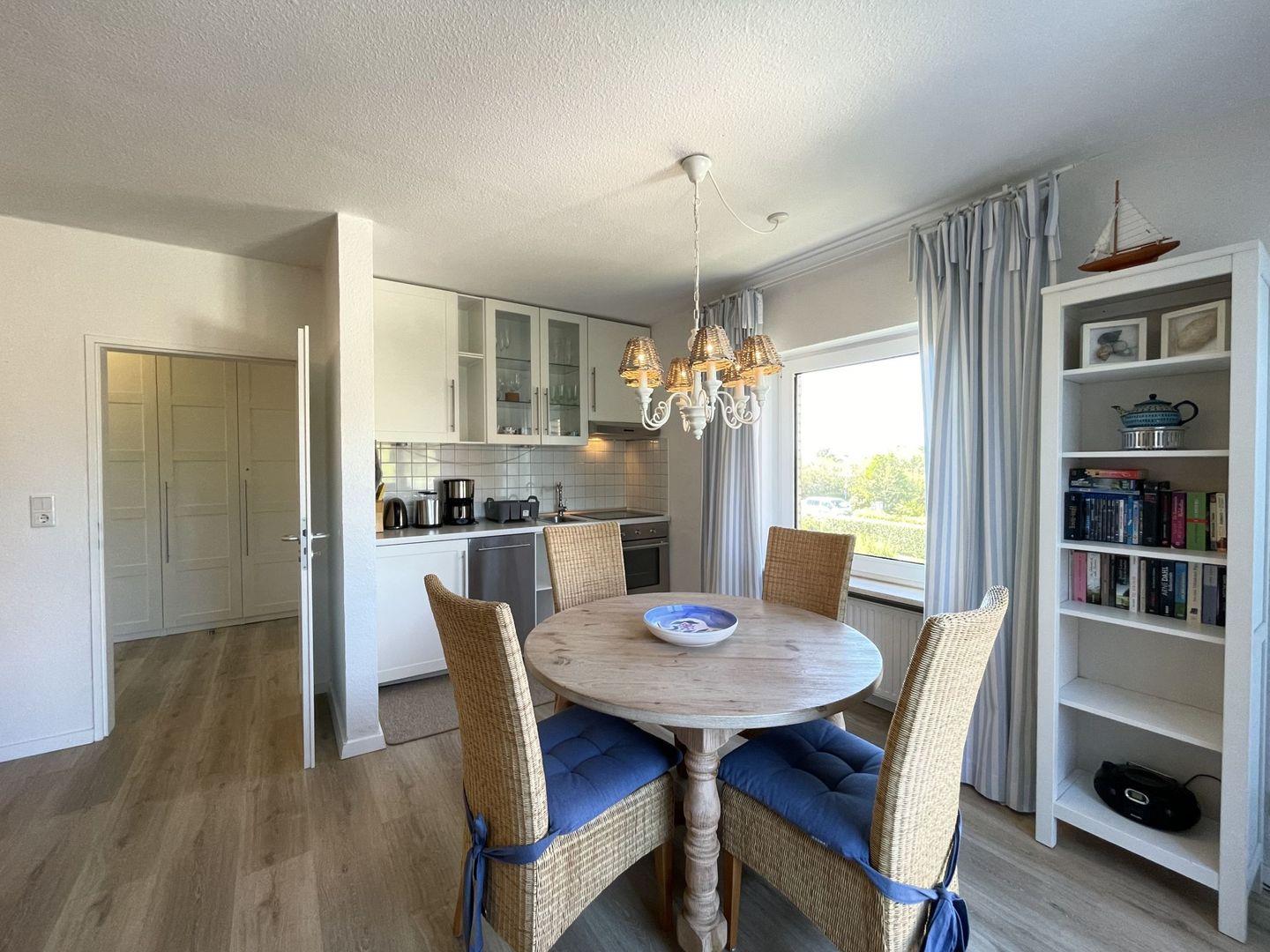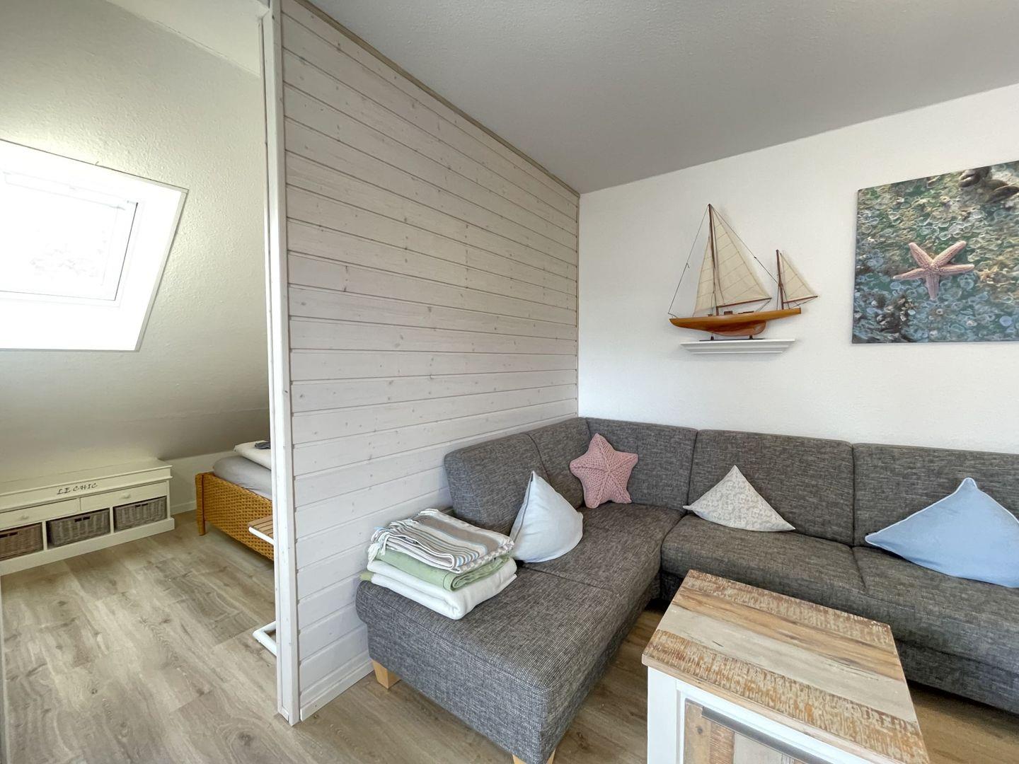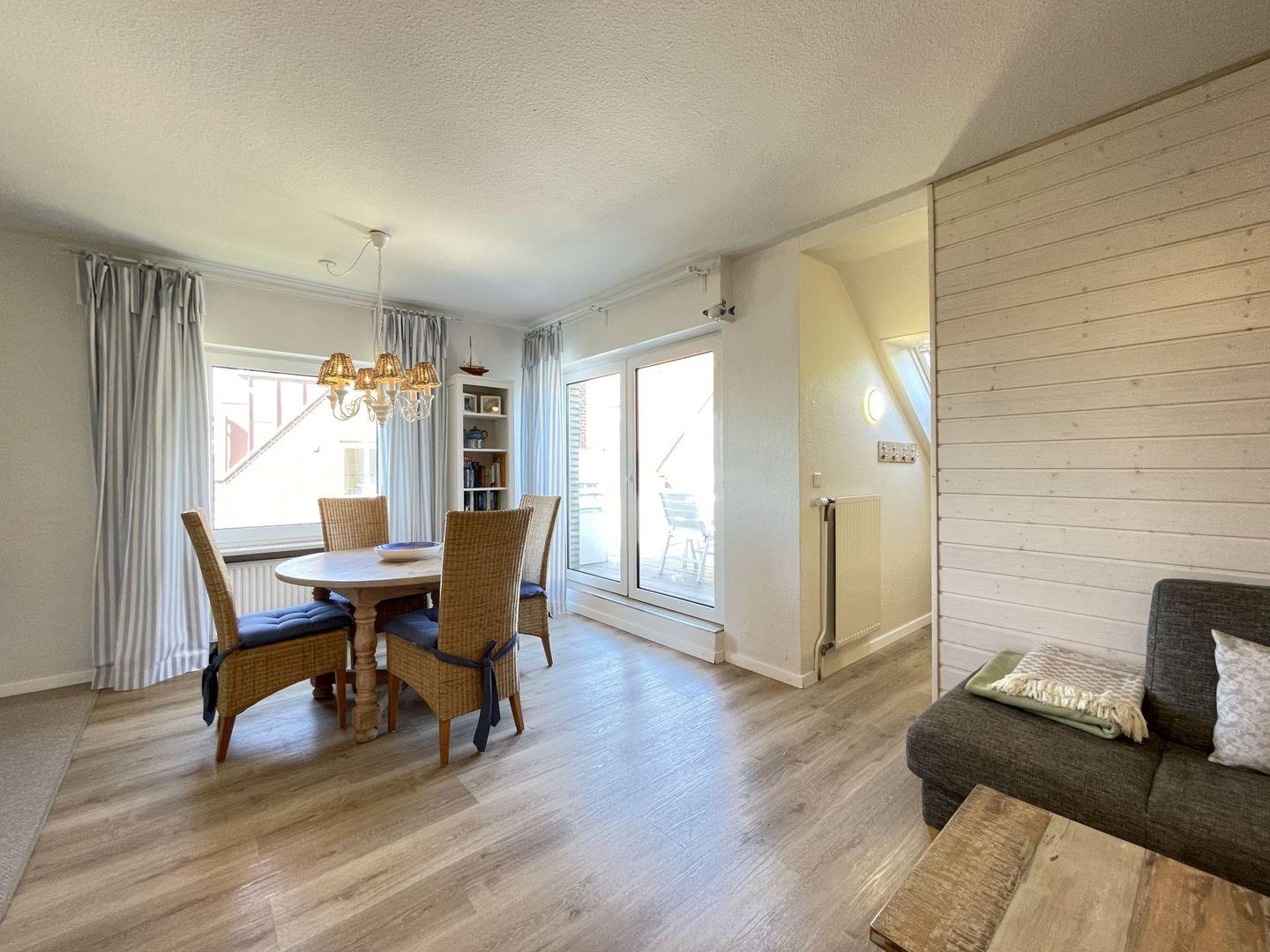 Gemütliche Ferienwohnung Fievfoten OG auf Borkum, 300 m vom Strand, mit Balkon, moderner Küche und WLAN.