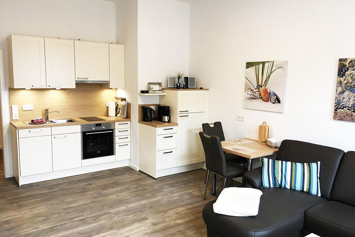 Die Wohnung liegt im Erdgeschoss und ist?ca. 47 qm?groß. Sie ist ideal für einen entspannten Urlaub zu zweit. Der großzügige offene Wohnraum mit integrierter Küche?sorgt für einen erholsamen Urlaub. Das Schlafzimmer?ist mit Doppelbett, großem Kleiderschrank und TV-Gerät ausgestattet, außerdem befindet sich in der ganzen Wohnung eine Fußbodenheizung. Für die kühleren Tage stehen Ihnen im Gebäude ein großzügiger Gemeinschaftssauna Bereich (gegen eine kleine Gebühr) sowie ein erholsamer Ruheraum zur Verfügung.