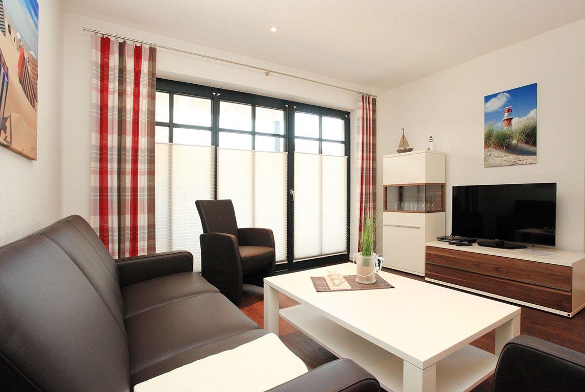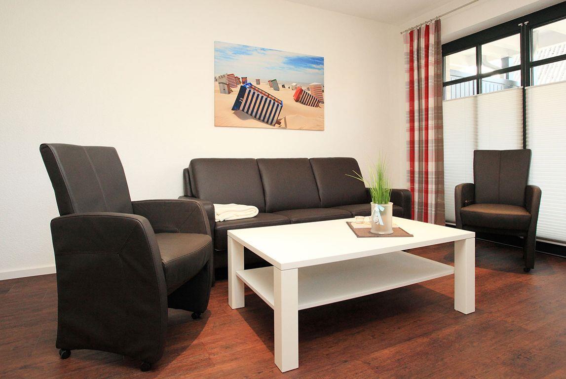 Die knapp 90qm große, 5-Sterne zertifizierte Wohnung erstreckt sich auf insgesamt drei Etagen und bietet so jede Menge Platz für bis zu vier Personen. Am Erdgeschoss schließt eine nach Süd-Westen ausgerichtete Terrasse an, die zum Entspannen und Kraft tanken einlädt. Zusätzlich verfügt die Wohnung im zweiten Obergeschoss über eine Sauna (Gebühr). Auf allen Etagen befinden sich ferner vollausgestattete Duschbadezimmer.