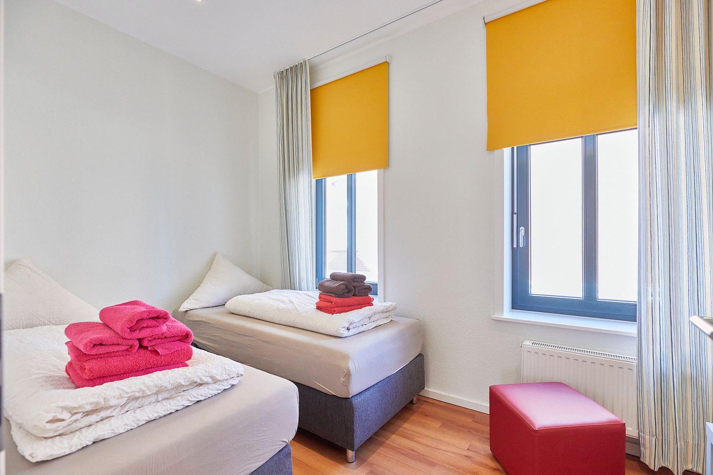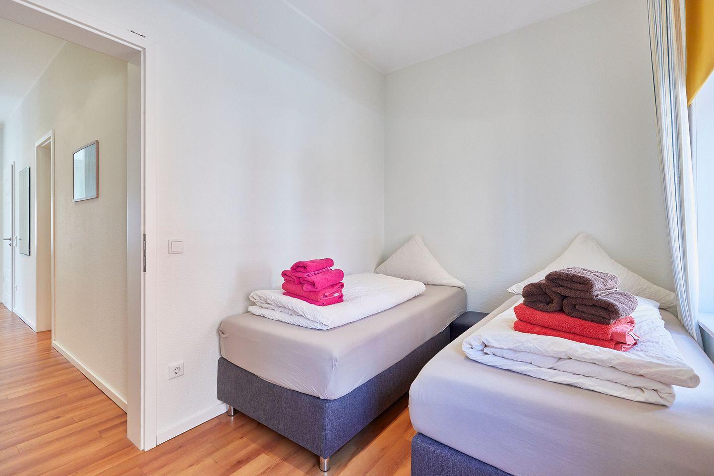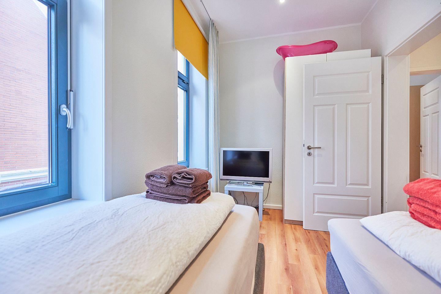 - Zweites Schlafzimmer mit zwei Einzelbetten (Boxspringbetten) und einem Flachbild TV