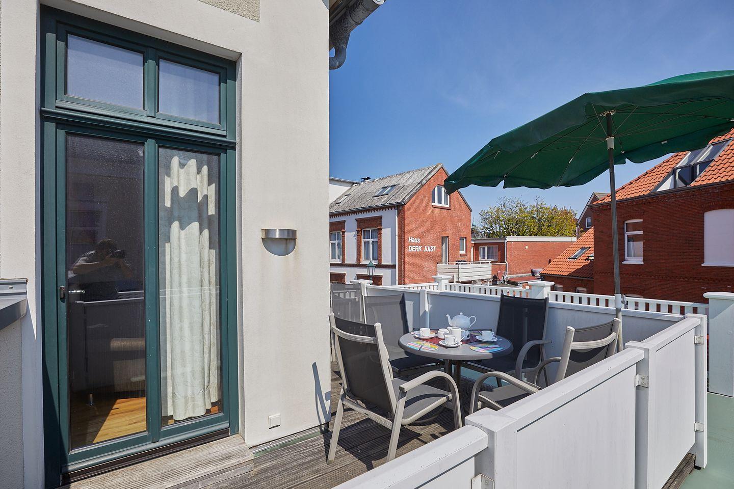 Die Wohnung Wiebke in der historischen Villa Wilhelmine bietet mit Dachterrasse und zentraler Lage auf Borkum ein exklusives Urlaubserlebnis.